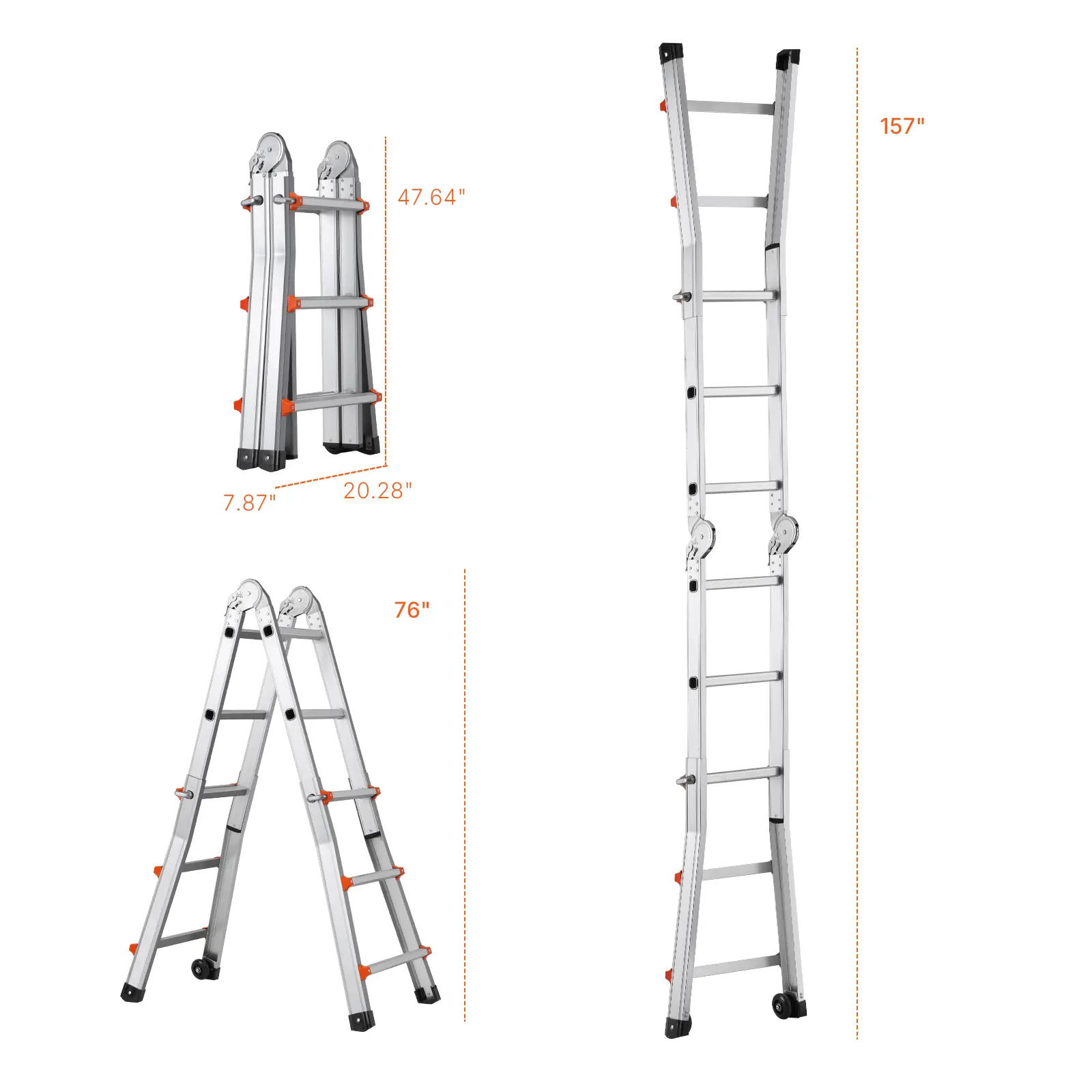 • Versatile Ladder: This telescoping a frame ladder adapts to various needs, easily transitioning between different configurations. With extendable legs reaching up to 180° and a maximum height of 9.5ft / 2880 mm, it’s perfect for maintenance or attic cleaning.