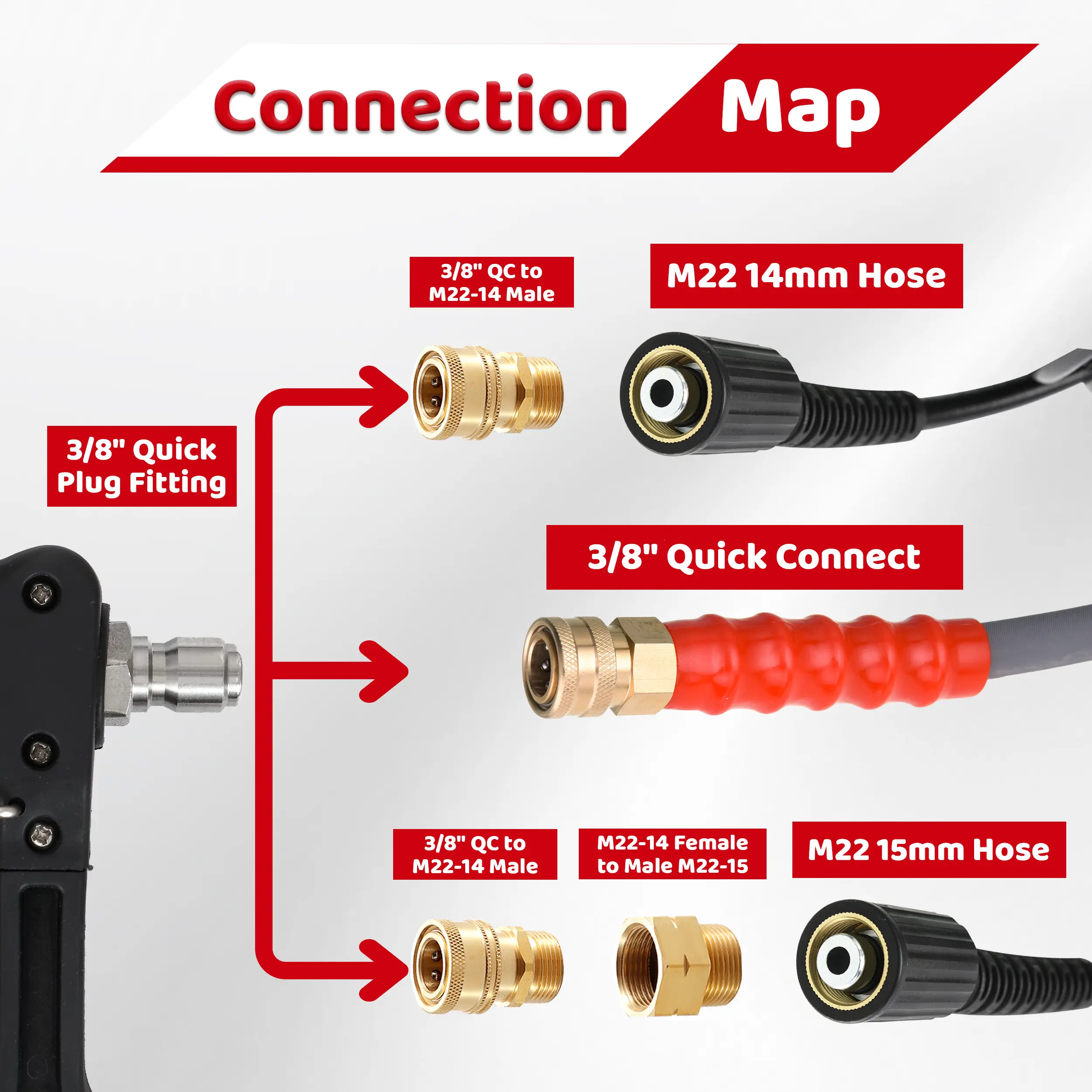 ·Wide Compatibility: The 3/8 inch quick plug fitting is compatible with both gas and electric pressure washers up to 4000 PSI. The included adapter is sturdy and leak-free, making it compatible with most brands of pressure washer hoses.
