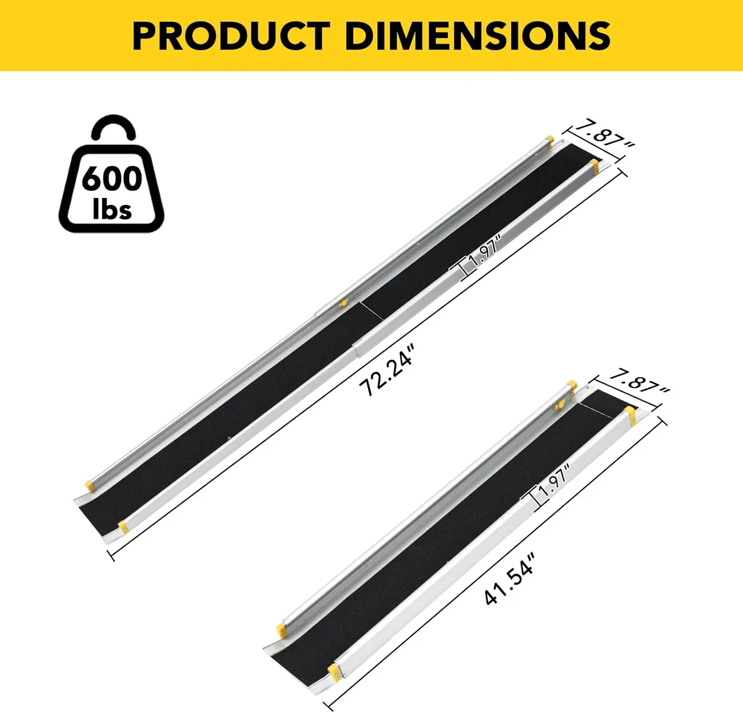 ·NON-SKID SURFACE: The telescoping wheelchair ramp is made of rust-proof, anti-slip, waterproof and lightweight aluminum. Affixed with an anti-slip film on the surface, which has high traction and anti-slip capabilities.