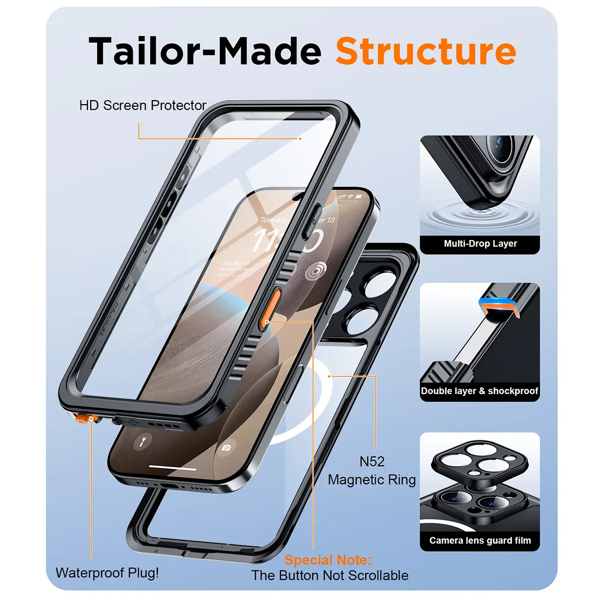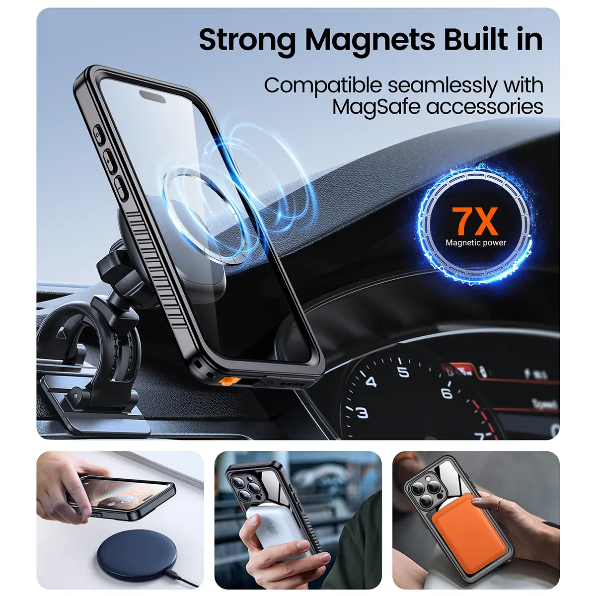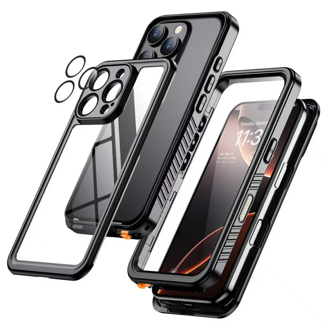 5. [3-in-1] Temdan Phone Case|Built in Screen Protector|Camera Lens Protector for iPhone 17/16/15/14 Pro Max/Pro/Plus/Air Case Waterproof, Shockproof, Magnetic Charging,Swimming, Snorkeling, Hiking, Riding, Boating, SummerBeach
