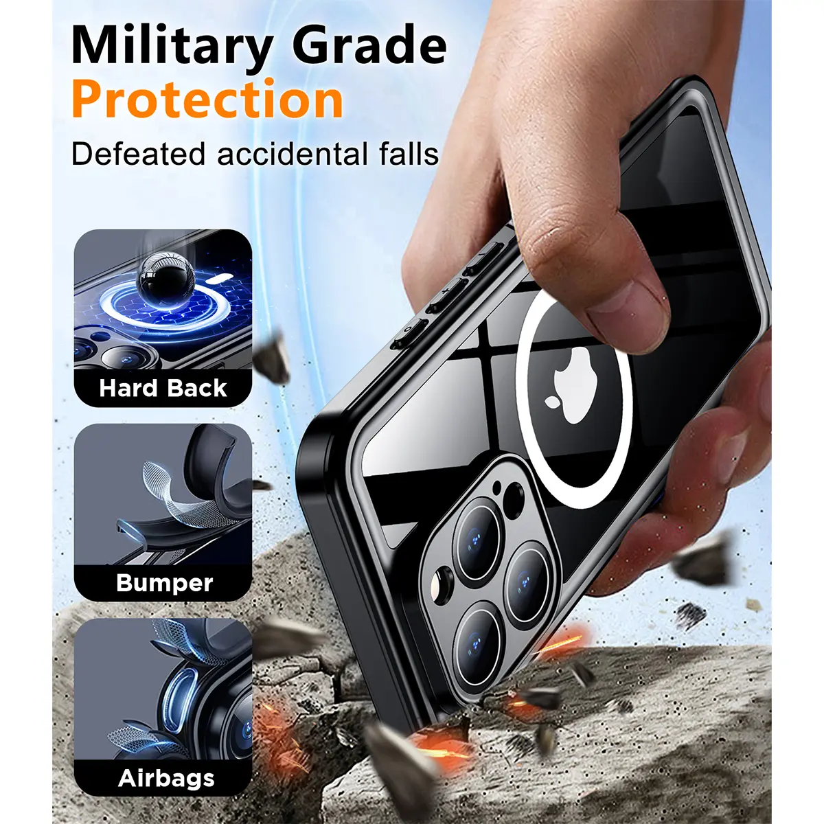 [3-in-1] Temdan Phone Case|Built in Screen Protector|Camera Lens Protector for iPhone 17/16/15/14 Pro Max/Pro/Plus/Air Case Waterproof, Shockproof, Magnetic Charging,Swimming, Snorkeling, Hiking, Riding, Boating, SummerBeach