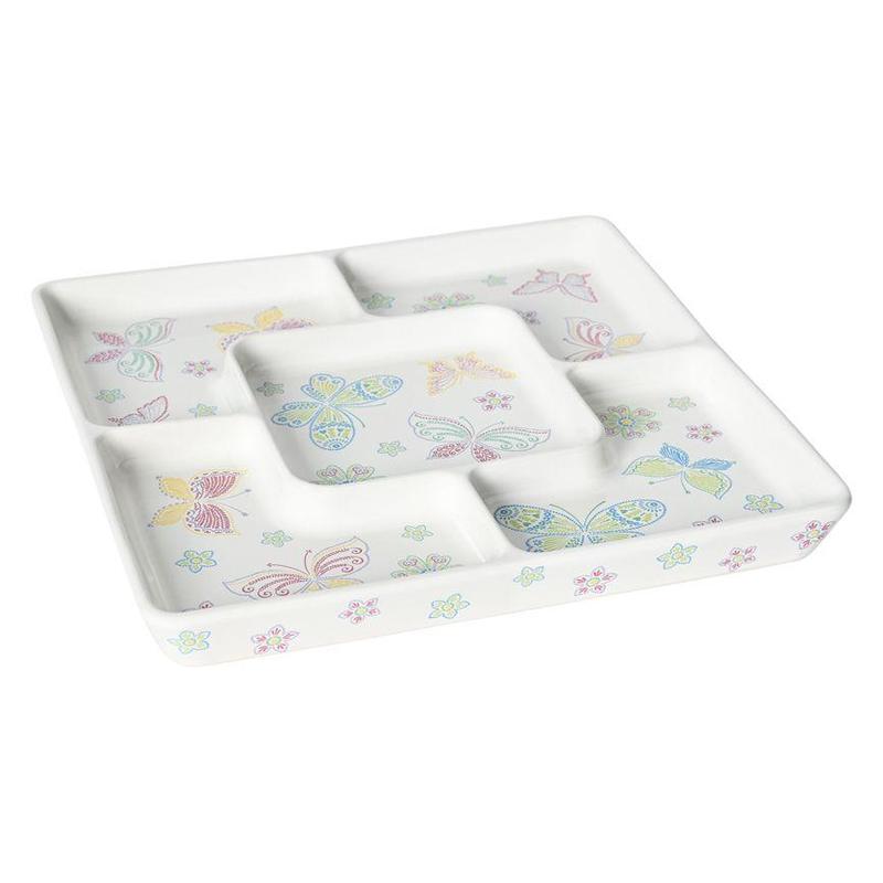 “All a Flutter” The prettiest divided serving tray by Temptations #QVC #qvctiktokshop #temptationsbakeware #ceramicsoftiktok #serveware #dividedtray #butterflytray