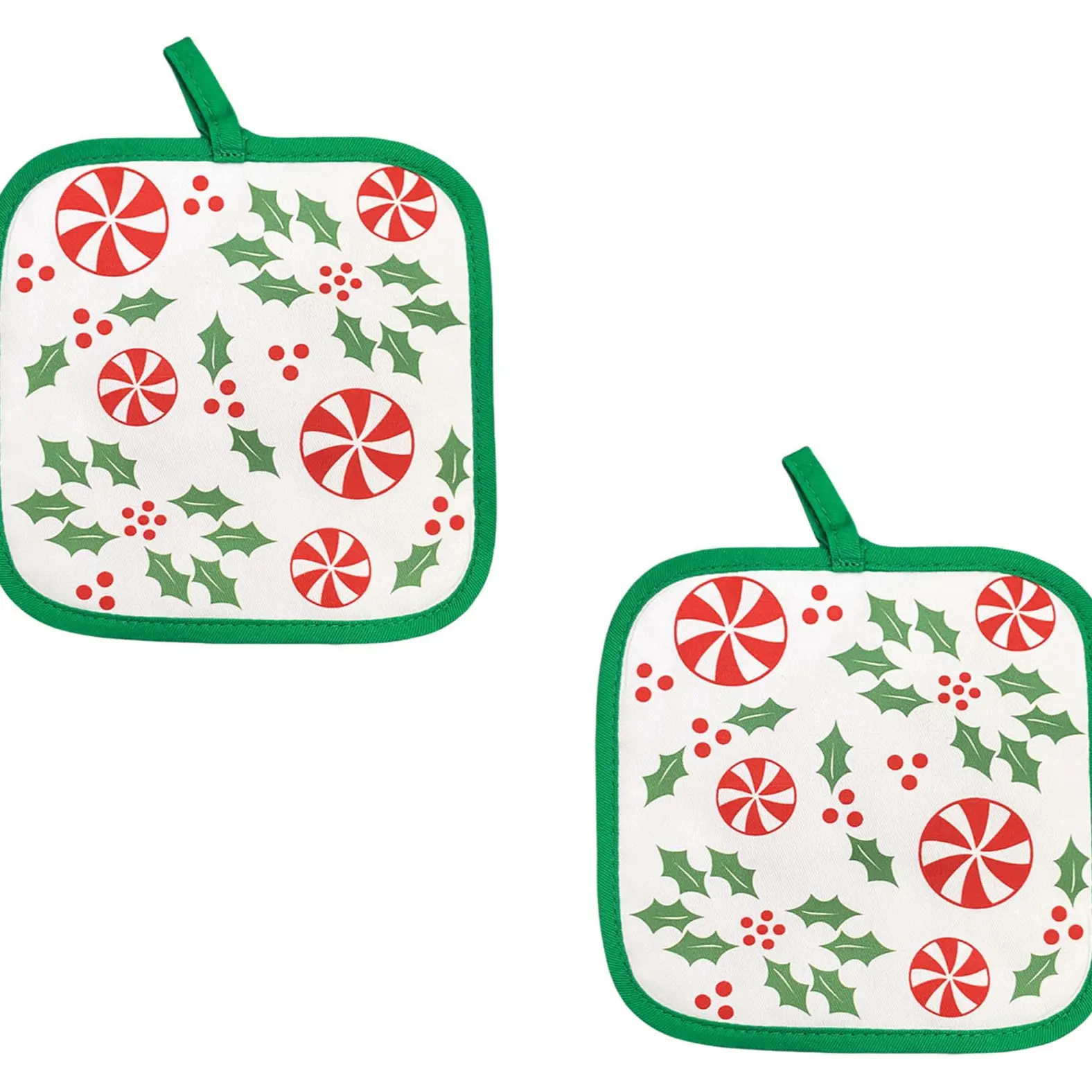 Set of two Holly peppermint temptations trivets for your Christmas baking.  #trivets #christmasdecor #temptations #hotpads #kitchenessentials #bakingneeds @QVC, Inc