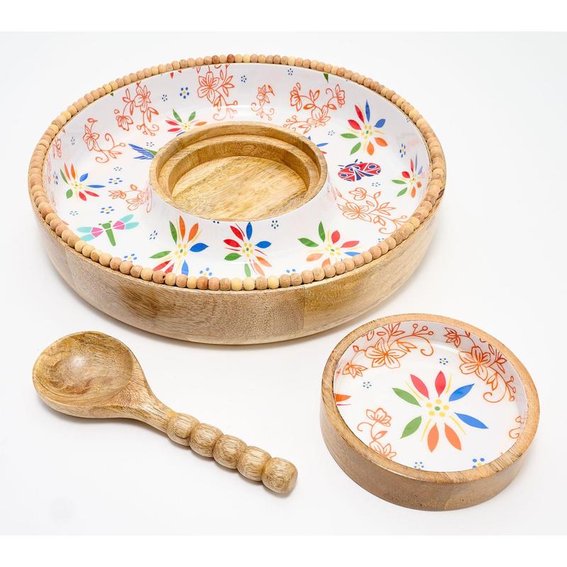·Includes chip and dip bowl with removable dip insert and wooden spoon