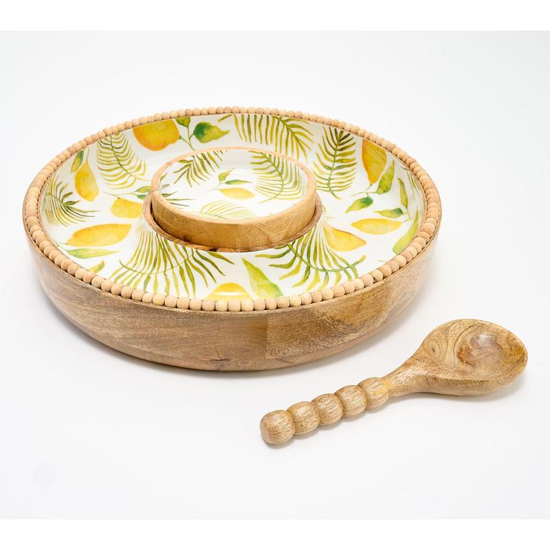 Tis the season for serving a party fave: chips and dip! But, then again, it's a most-wanted munchie allll year long! Whether it's homemade guac or store-bought salsa (we won't tell!), presenting palate-pleasing chips or veggies and dip in this wooden serving set is sure to wow 'em. From Temp-tations®.