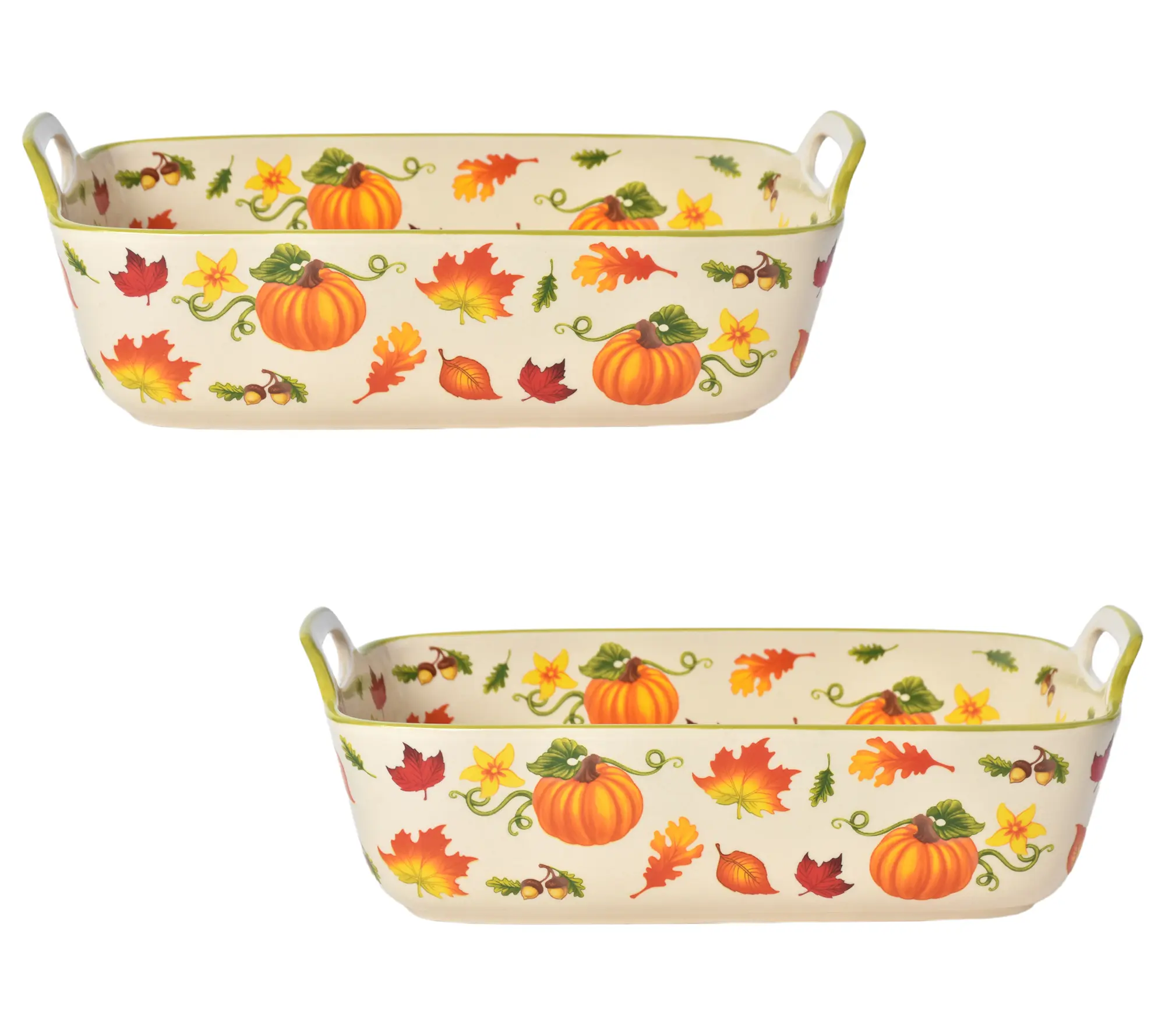 As much as I had never considered fall bakeware, this two piece set of 11x7“ bakers spoke to me because it has a lot of fall aesthetic, but I don’t need a ton of space to store it. They clean up wonderfully too! #fallbaking #fallaesthetic #bakersoftiktok #thanksgivingdinner #autumnaesthetic