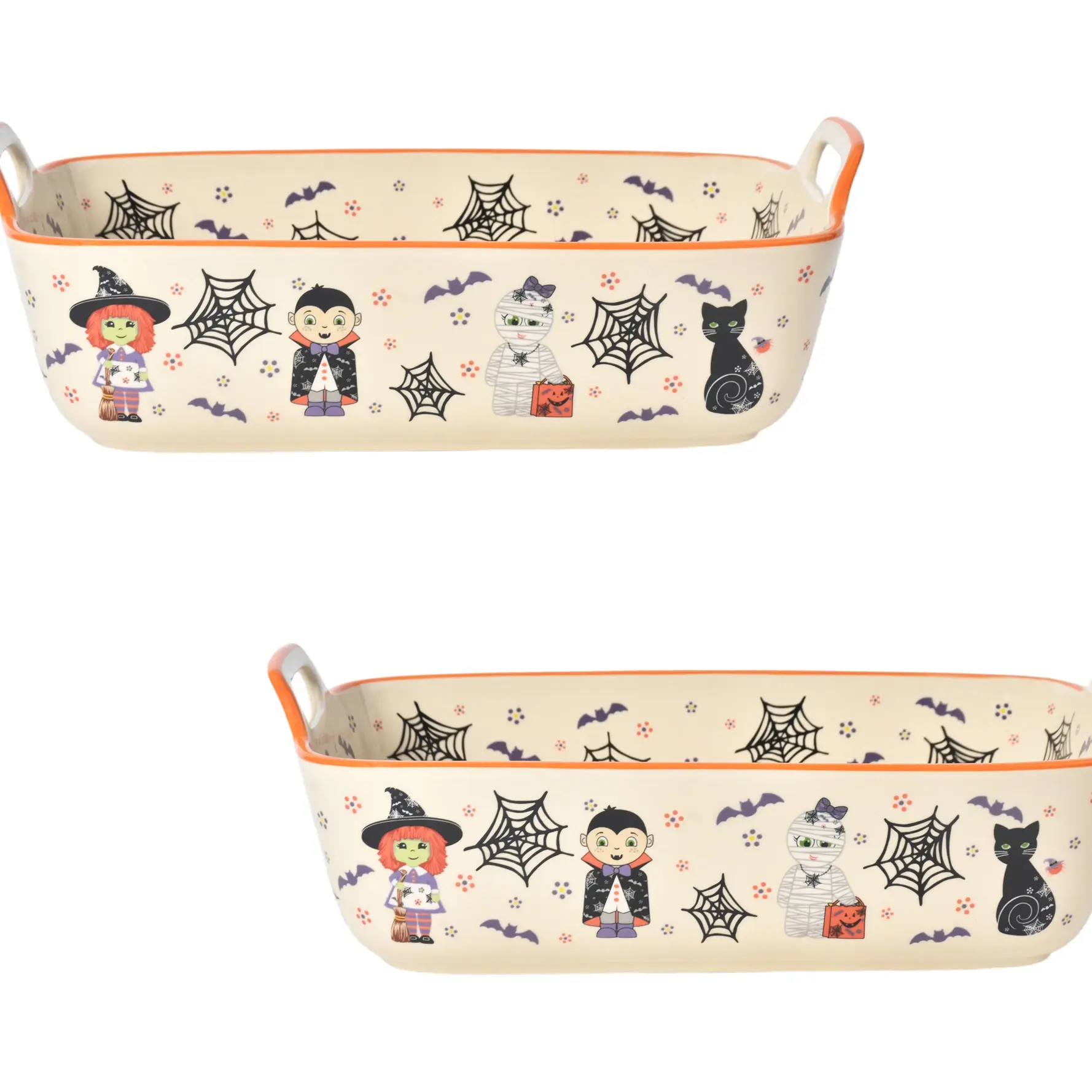 Temp-tations Set of (2) 11x7 Bakers with Upswept Handles (2) Ceramic 11x7 Bakers 12.25"x7"x4 Imported. Add temp-tations to your everyday home experience. Ceramics are hand crafted with bold accents and beautiful colors.