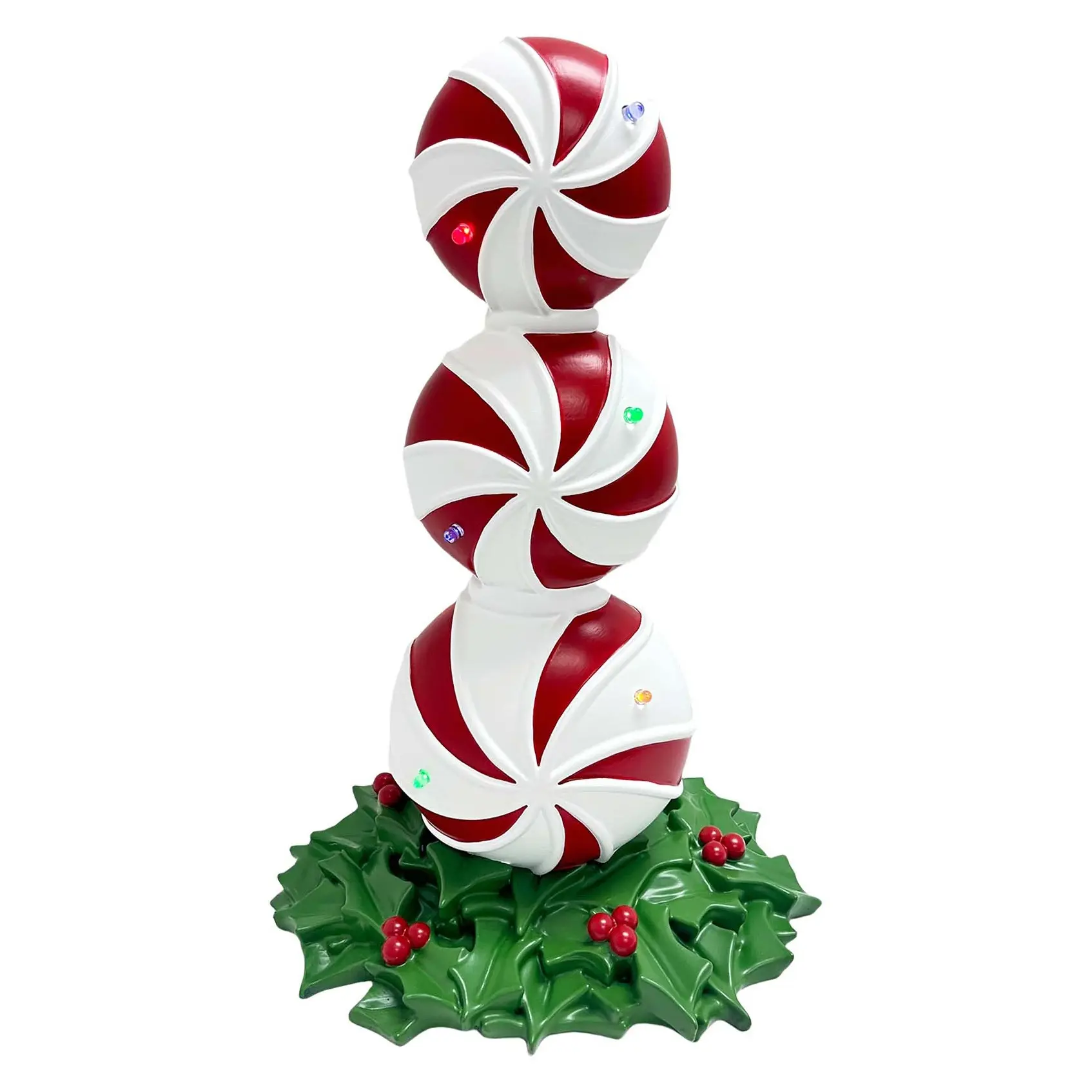 Temp-tations Seasonal Illuminated Icons (1) Resin Illuminated Icons Peppermint 18x12.75x26 / Tree 16x16x26 Nutcracker 9x8.5x25.75 / Flamingo 13.25x13.25x25.75 Imported. To clean: Use a soft, dry cloth. Powered by 2 type "C" alkaline batteries (not included). Timer mode: Will automatically turn on at the same time each day with a 6 hour on, 18 hour off cycle.