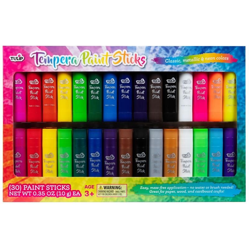 · Includes 30 (0.35 oz.) Tempera Paint Sticks in classic, metallic, and neon colors