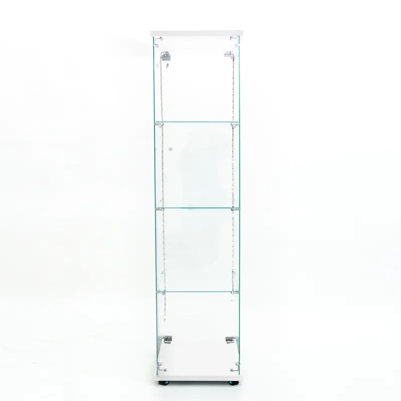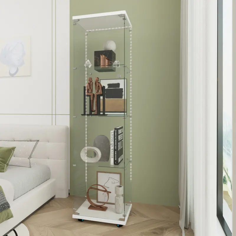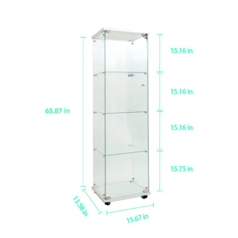 ·Tempered Glass Display Cabinet: Measures 65.87" (H) x 15.67" (L) x13.58" (W), with an overall weight capacity of 110 lbs, each tempered glass shelf can hold up to 11 lbs,Color:white