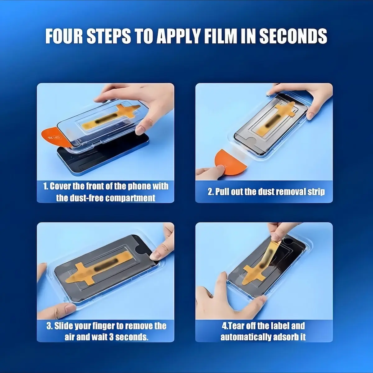 Tempered Glass Screen Protector with One-Click Film Applicator, Full Coverage Edge Protective Anti-fingerprint Screen Protector for iPhone, Computer