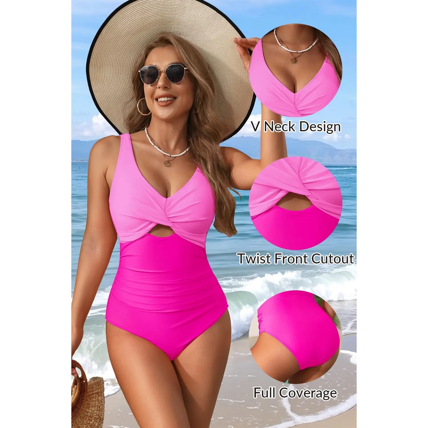 ·Pink One Piece Swimsuit: This V-neck bathing suit features removable padding and adjustable straps for a perfect fit that hugs your curves.
