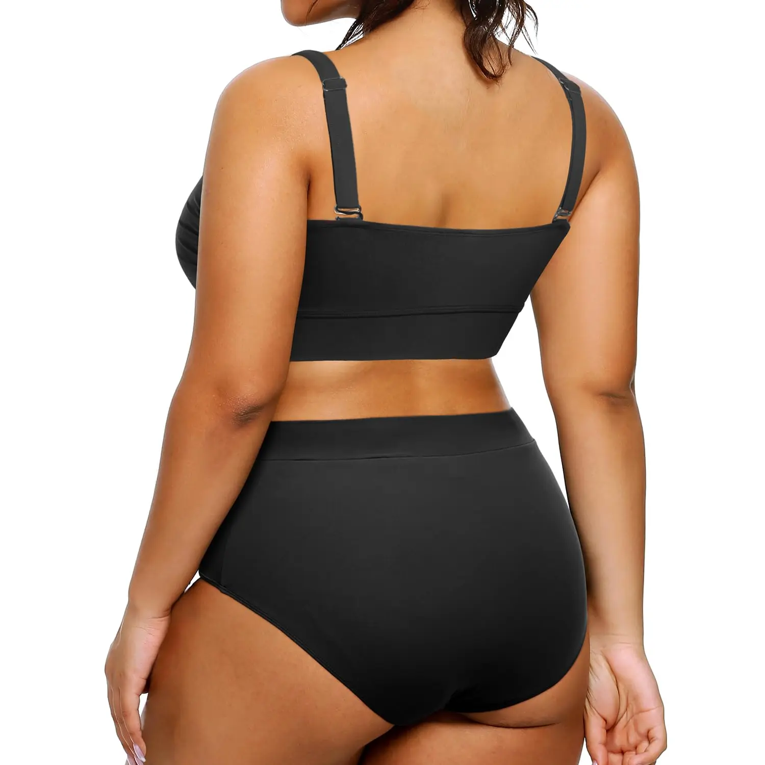·Plus Size Two Piece Swimsuits: This black two piece bathing suit is equipped with a removable soft padded bra and adjustable straps.