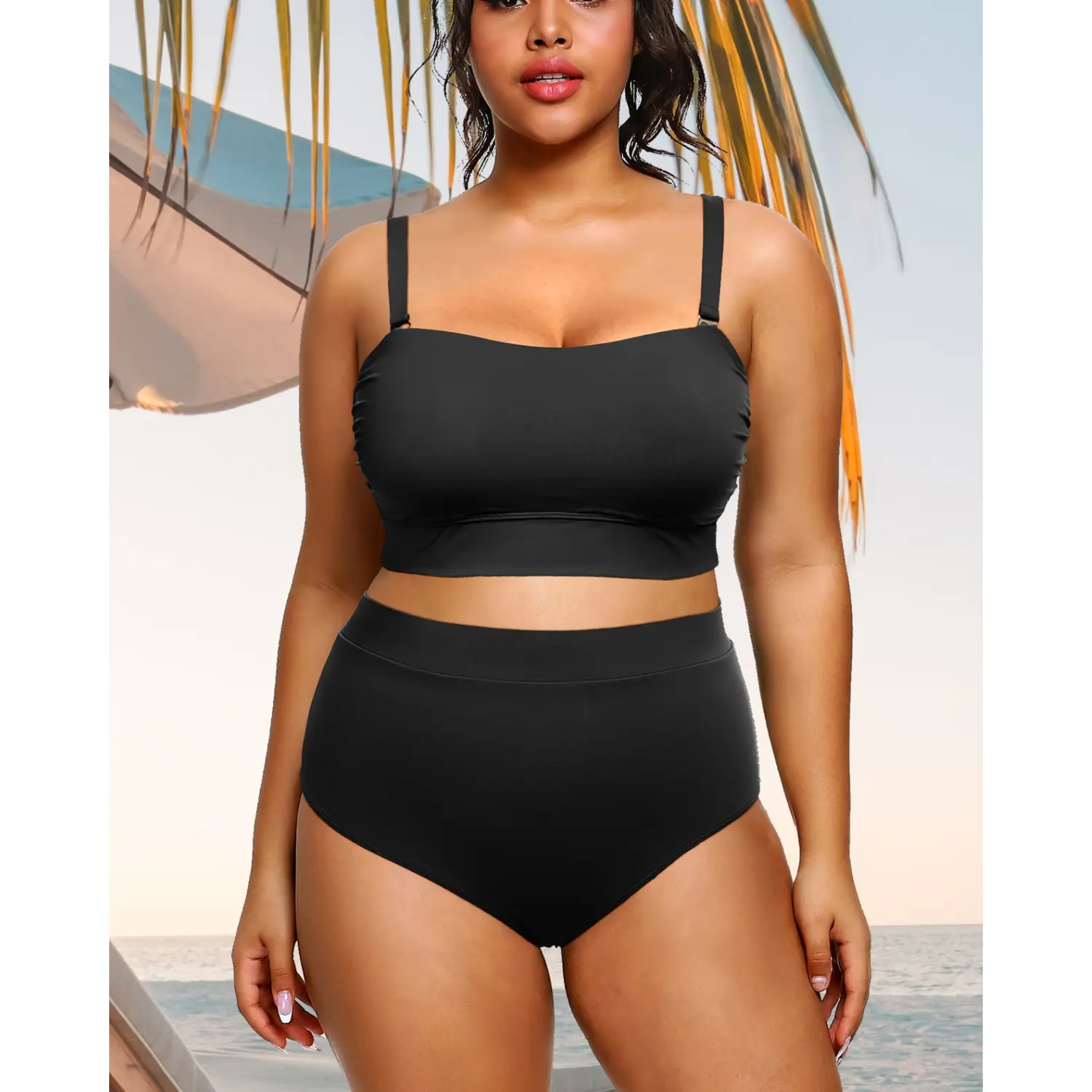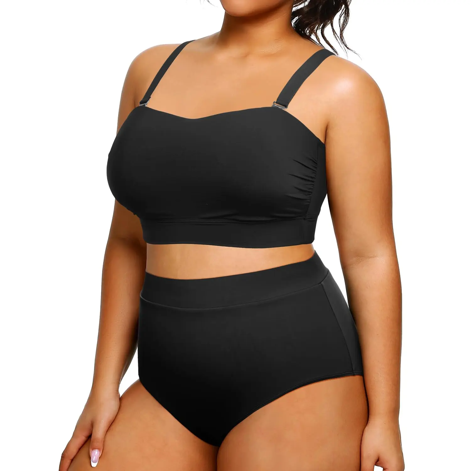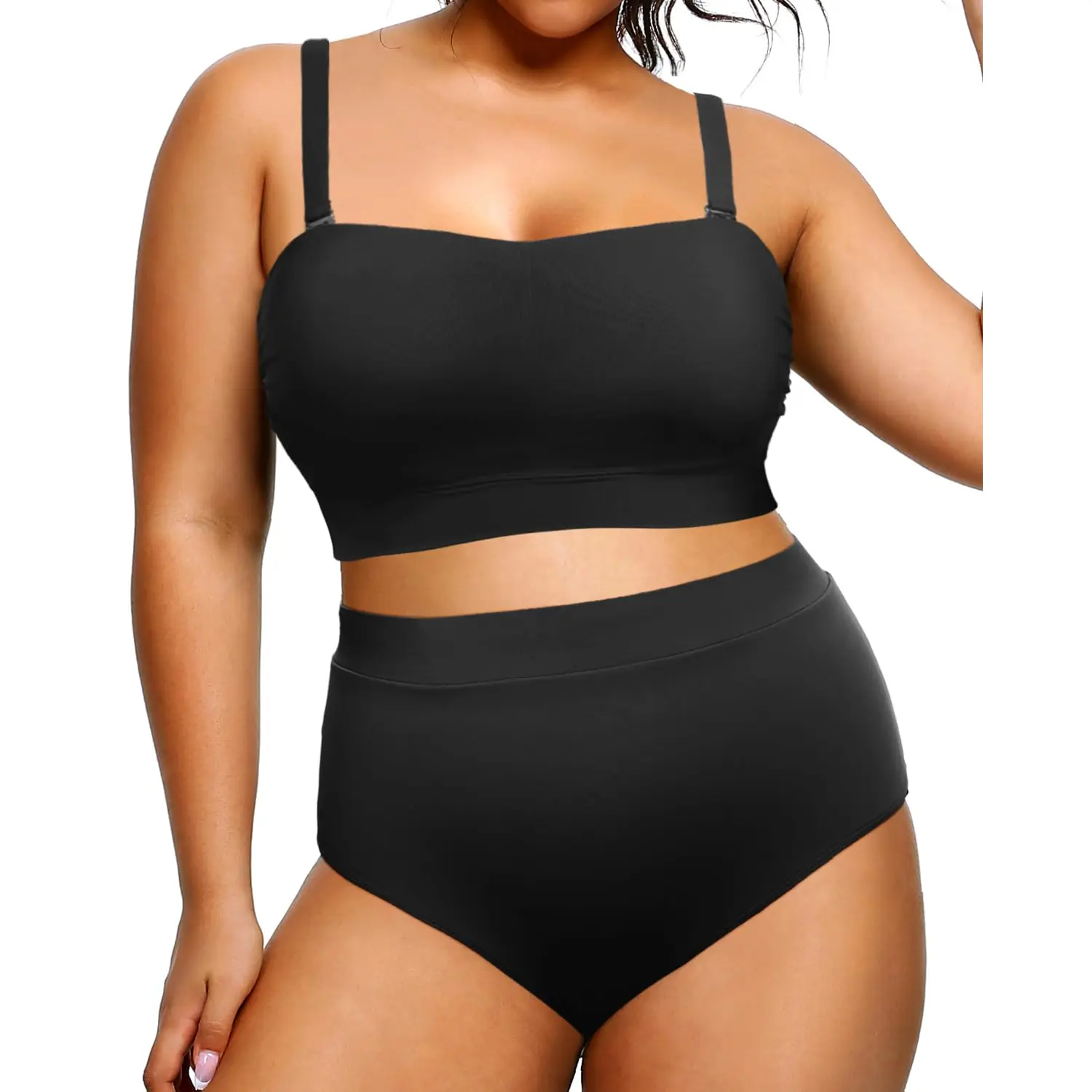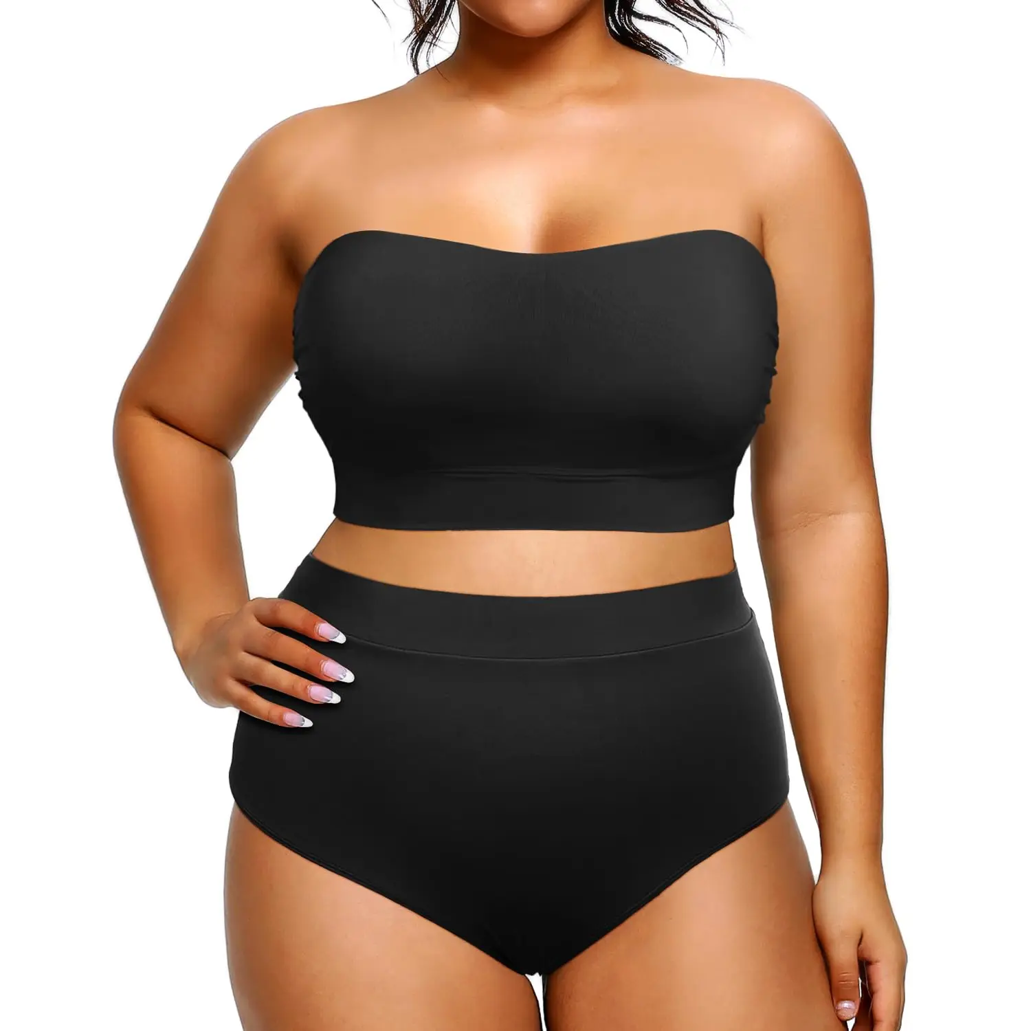 ·Plus Size Bandeau Bikini Top: This strapless swimsuit has removable shoulder straps. You can choose to wear it with or without straps according to your needs.