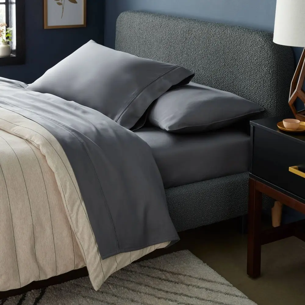 Give your bedroom a new look and feel with this 320 Thread Count TENCEL Lyocell Sheet Set from Threshold. The soft and breathable lyocell satin fabric helps you get a comfortable night's sleep, while the fully elasticized fitted sheet lends a secure fit around an 18in mattress. Best of all, you can simply toss this set in the washing machine for easy cleaning.