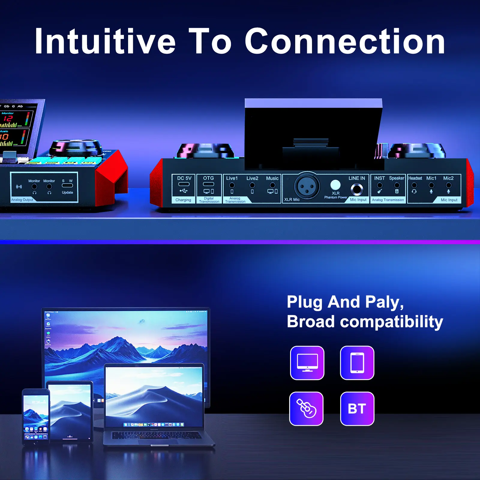 【Sound Board for 3.5mm/6.35mm Dynamic/48V Microphone】No complicated setup required! Just plug the live sound card into your PC, Mac, or mobile device, and start streaming or recording right away. This pod cast equipment kit is designed to make your audio experience seamless and easy.