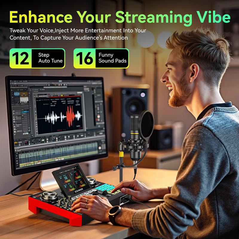 ·Multi-channel Sound Mixer: Motorized faders & knobs plus adjustable display screen accurately allow you control microphone, music, monitor, speaker, instruments, and more for the perfect streaming mixing, onboard controlling your all of audios.