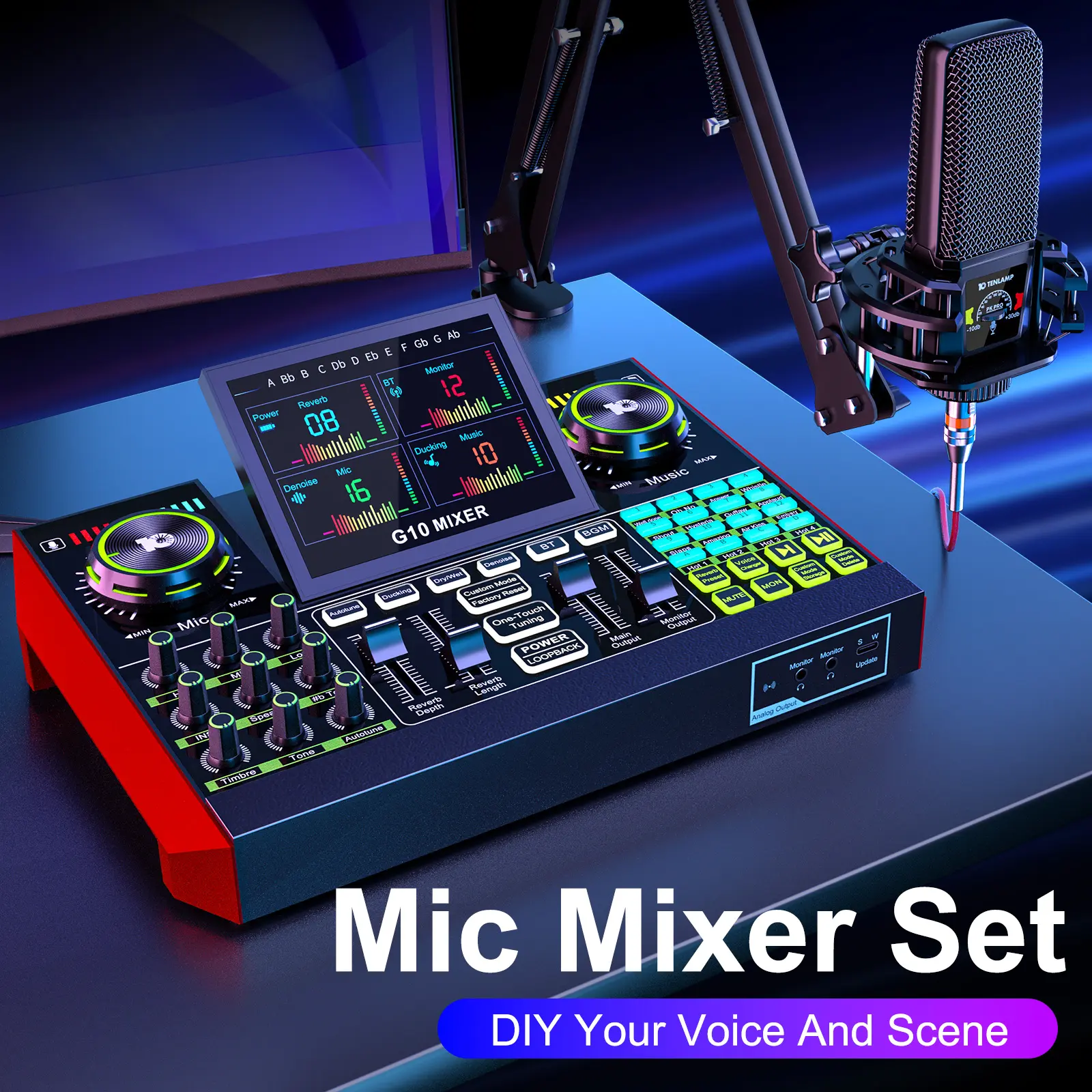 【Podcast Equipment Bundle】The podcast microphone bundle includes everything you need for professional-quality audio creation: a 3.5mm condenser microphone with a disk bracket and the G10 Sound Board. Perfect for podcasters, gamers, streamers, and content creators who want an all-in-one solution for mixing, recording, and streaming.