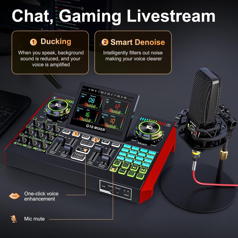 Tenlamp G10-PK PRO Mixer Sound Card Kit, Custom Sound Effects, with Condenser Microphone, for Live Streaming, Gaming, Singing Podcast Equipment, 2-Level Noise Reduction, Computer Audio Mixer#TikTokShopBacktoSchoolTenlamp G10-PK PRO Mixer Sound Card Kit, Custom Sound Effects, with Condenser Microphone, for Live Streaming, Gaming, Singing Podcast Equipment, 2-Level Noise Reduction, Computer Audio Mixer#TikTokShopBacktoSchoolTenlamp G10-PK PRO Mixer Sound Card Kit, Custom Sound Effects, with Condenser Microphone, for Live Streaming, Gaming, Singing Podcast Equipment, 2-Level Noise Reduction, Computer Audio Mixer#TikTokShopBacktoSchoolTenlamp G10-PK PRO Mixer Sound Card Kit, Custom Sound Effects, with Condenser Microphone, for Live Streaming, Gaming, Singing Podcast Equipment, 2-Level Noise Reduction, Computer Audio Mixer#TikTokShopBacktoSchool
