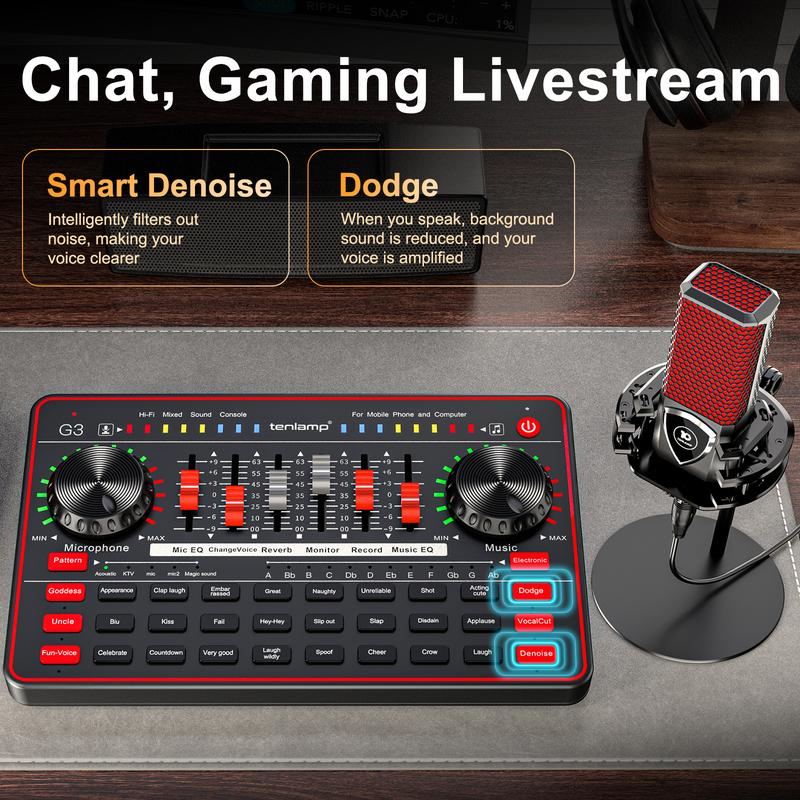 ·Fun Voice Changer & 20+ Scene Sound Effects for Viral Content: Level up your content engagement with a full range of voice filters (robot, chipmunk, deep bass, goddess) and 20+ scene sound effects (applause, laughter, gasps, game-winning cues). Tap a button mid-stream to prank your gaming squad, add comedy vibes to your podcast, or keep viewers hooked with unexpected audio surprises—great for boosting watch time and shares!