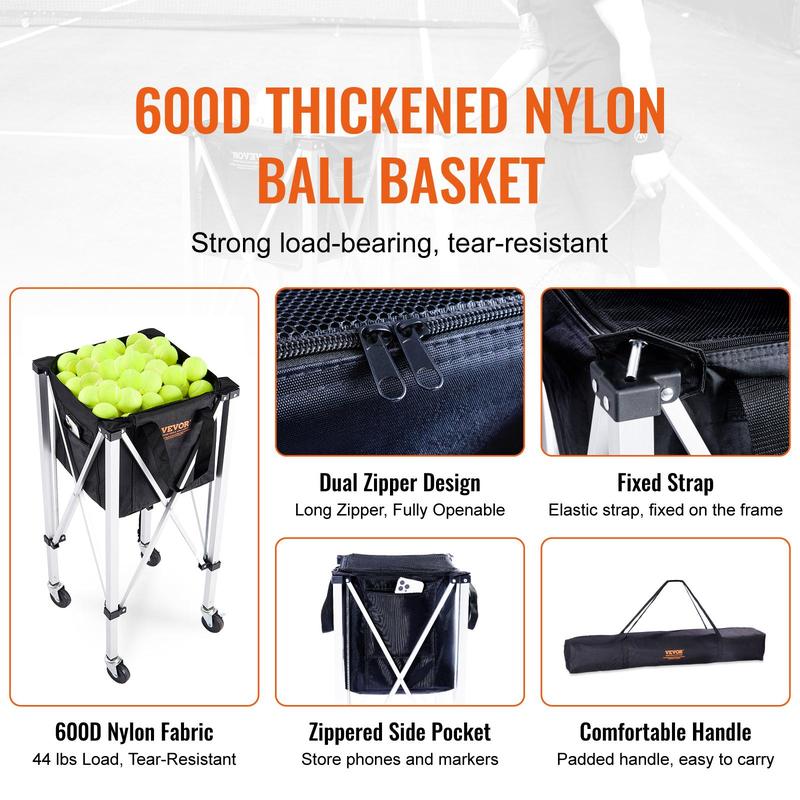 • Premium Materials: Made with sturdy aluminum alloy and waterproof nylon, our tennis ball hopper basket can handle whatever the weather throws at it. The smooth zipper ensures hassle-free use every time. It's the perfect solution for keeping your balls organized during practice sessions.