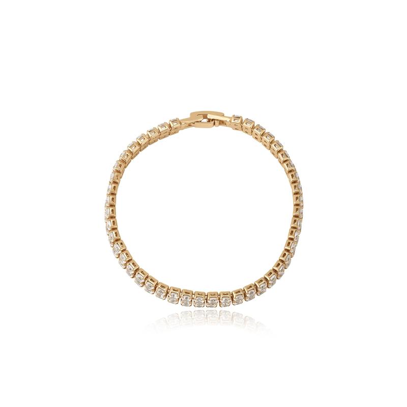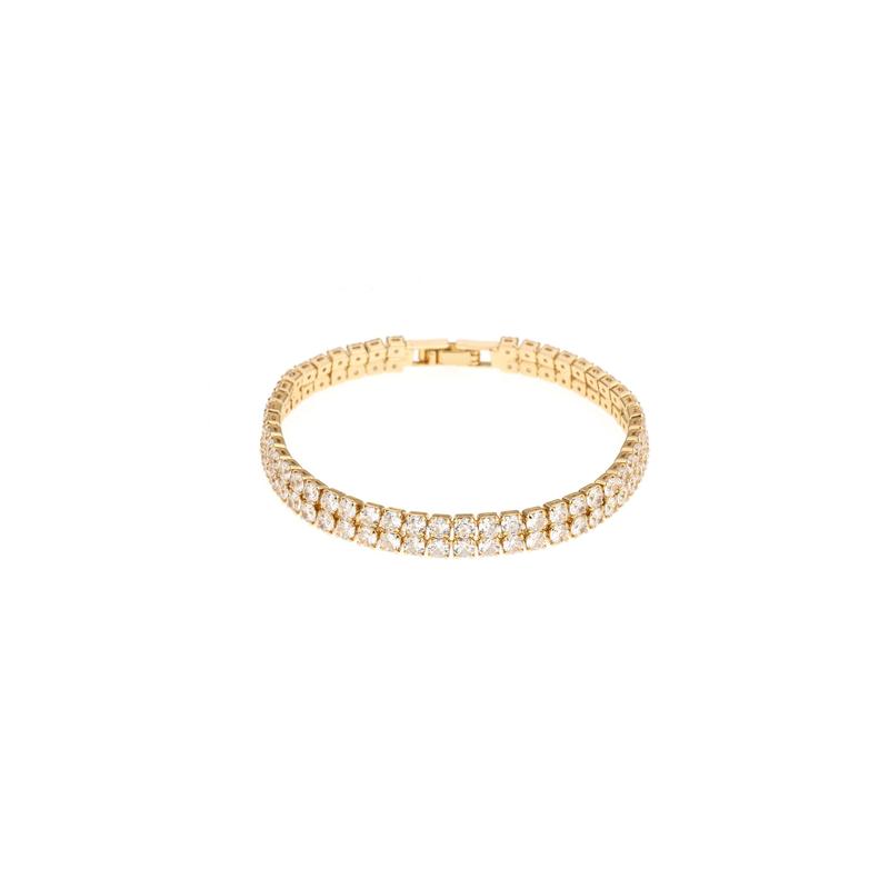 5. Ettika Crystal Double Layered Tennis Bracelet 18k Gold Plated Brass 7 Inches Snap Lock Closure Elegant Design