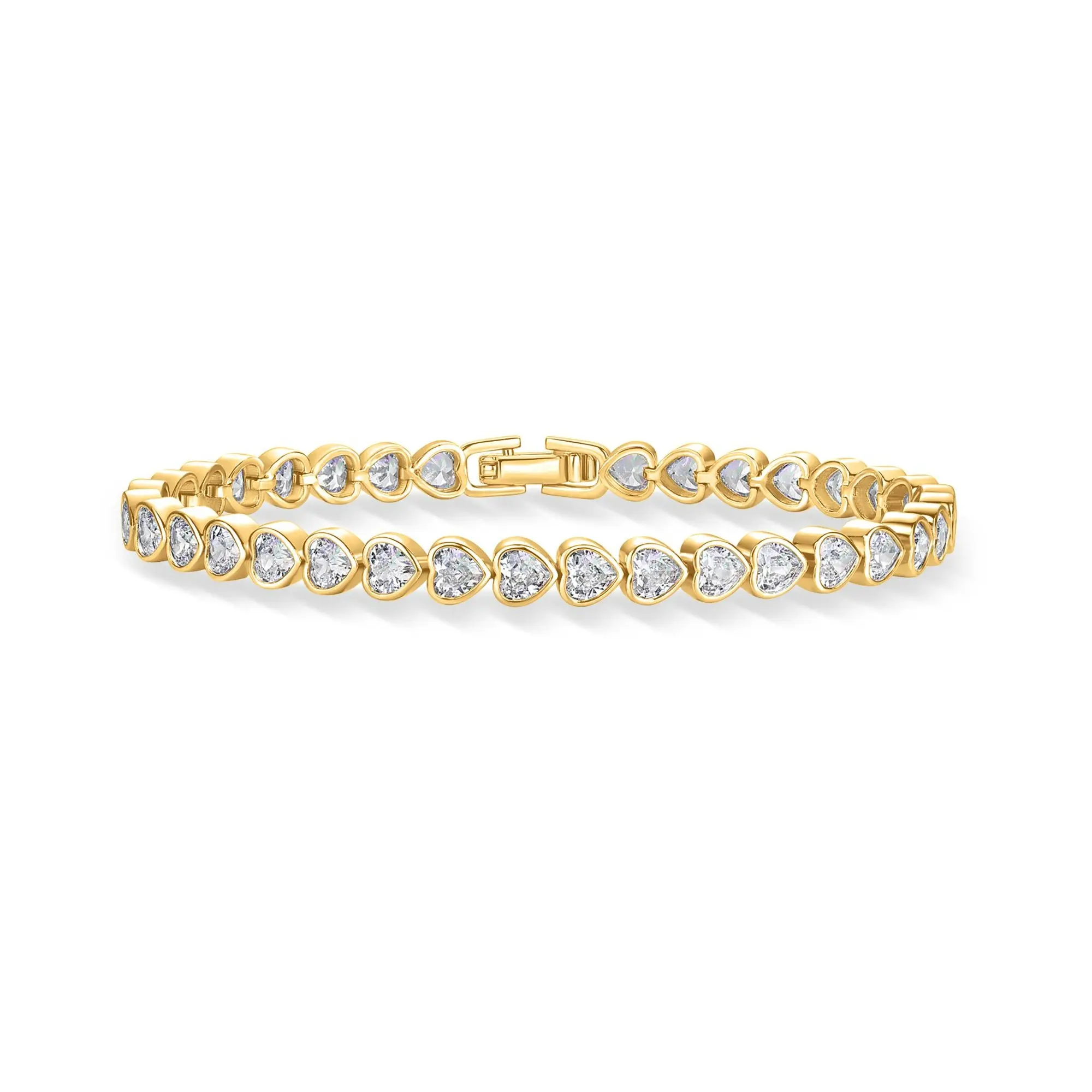 PAVOI 14K Gold Plated Cubic Zirconia Heart Tennis Bracelet