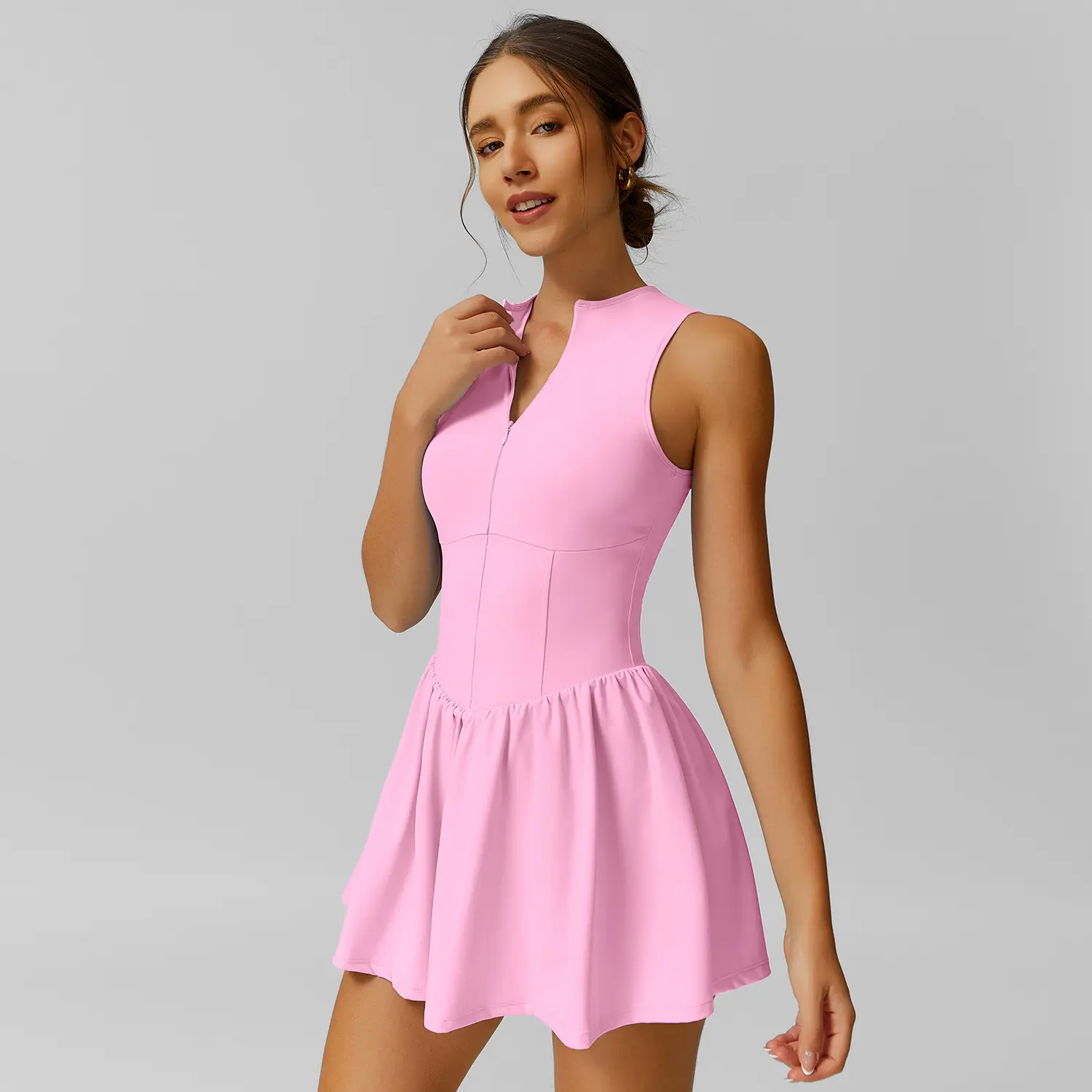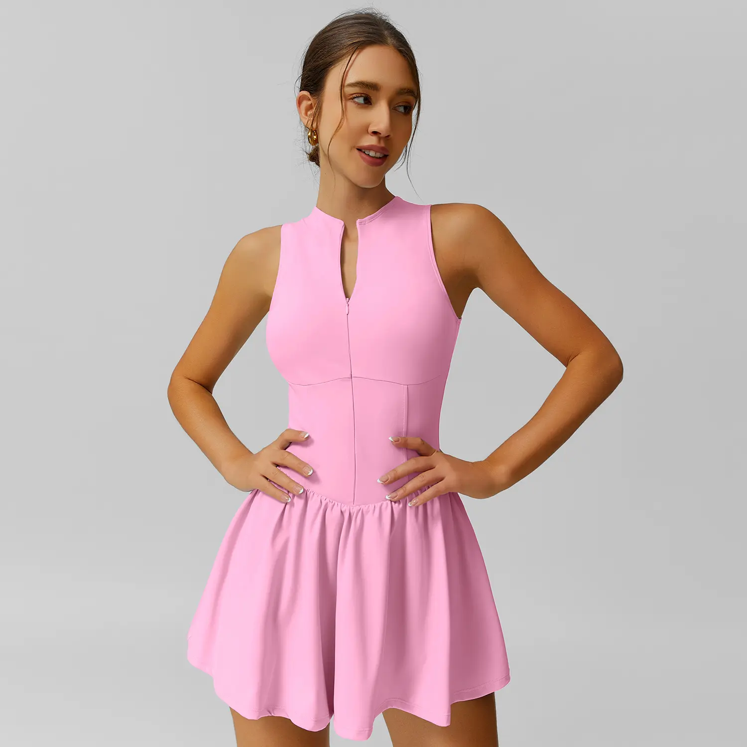Dress fit well and had a good stretch. My main issue was with the quality. Wanted to wear it open a bit at the top like in the pictures, but the way the zipper was hemmed in makes it look weird. Other than that length was great and fit was great (5’-2”, 155lbs, size M). Would not recommend this product unless you don’t have an issue with this look on the neckline.
