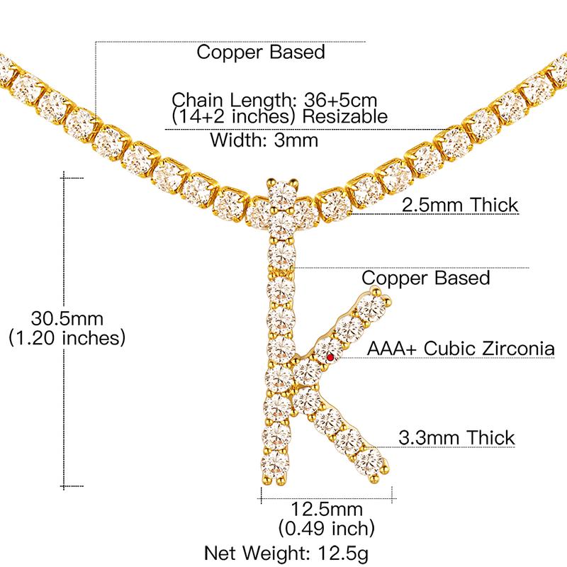 FindChic Tennis Initial 26 Letters Cubic Zirconia Necklace Bling Golden Cubic Zirconia Choker Chain 14" with A-Z Alphabet 26 Letter Pendant, Bling Rapper Hip Hop Unisex Jewelry for Women Men Boys Girls Couple Jewelry Back to School Gift