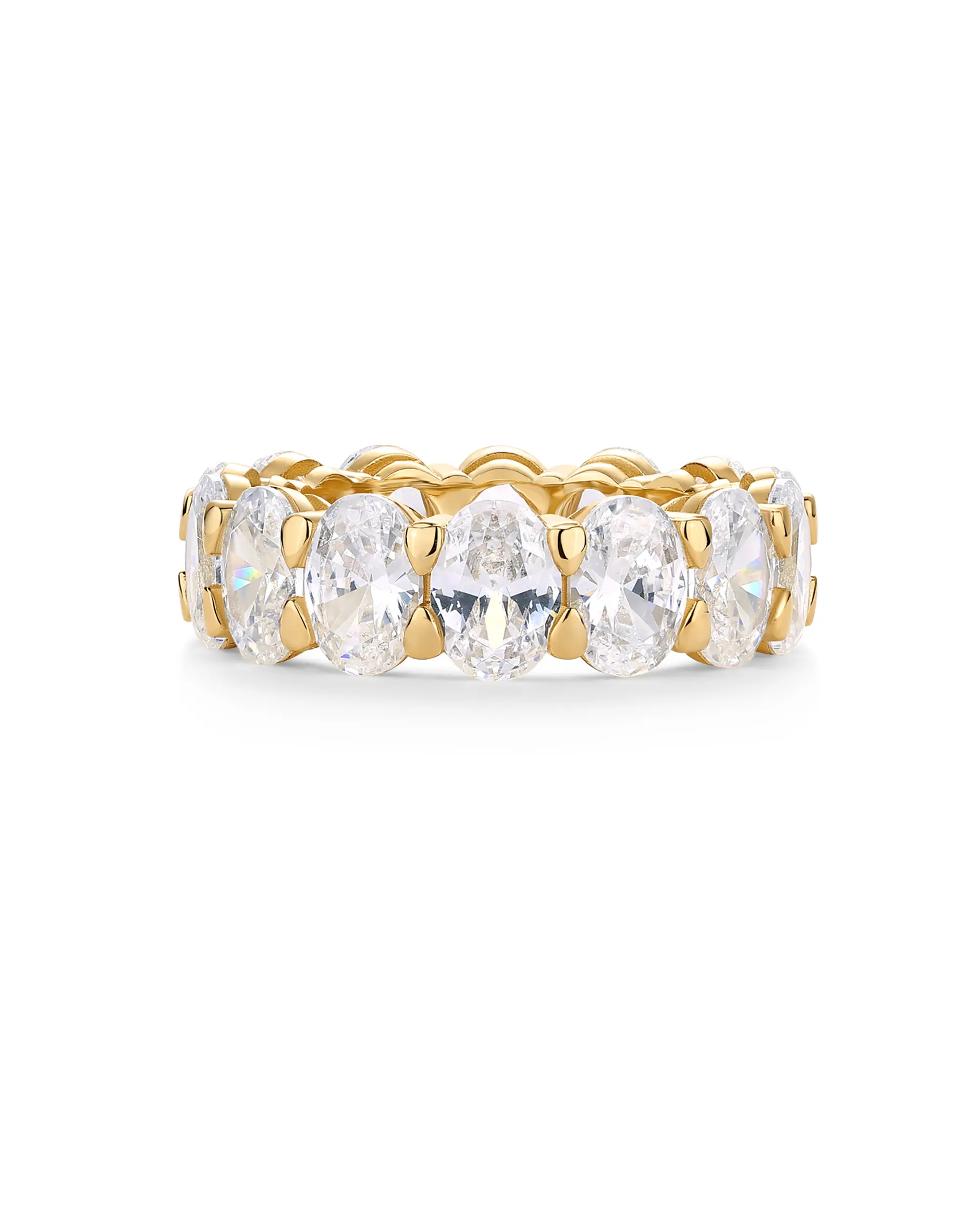 5. PAVOI 14K Gold Plated Eternity Ring for Women - Oval Cubic Zirconia Wedding Eternity Band - Stackable Wedding Band - Travel Bridal Jewelry