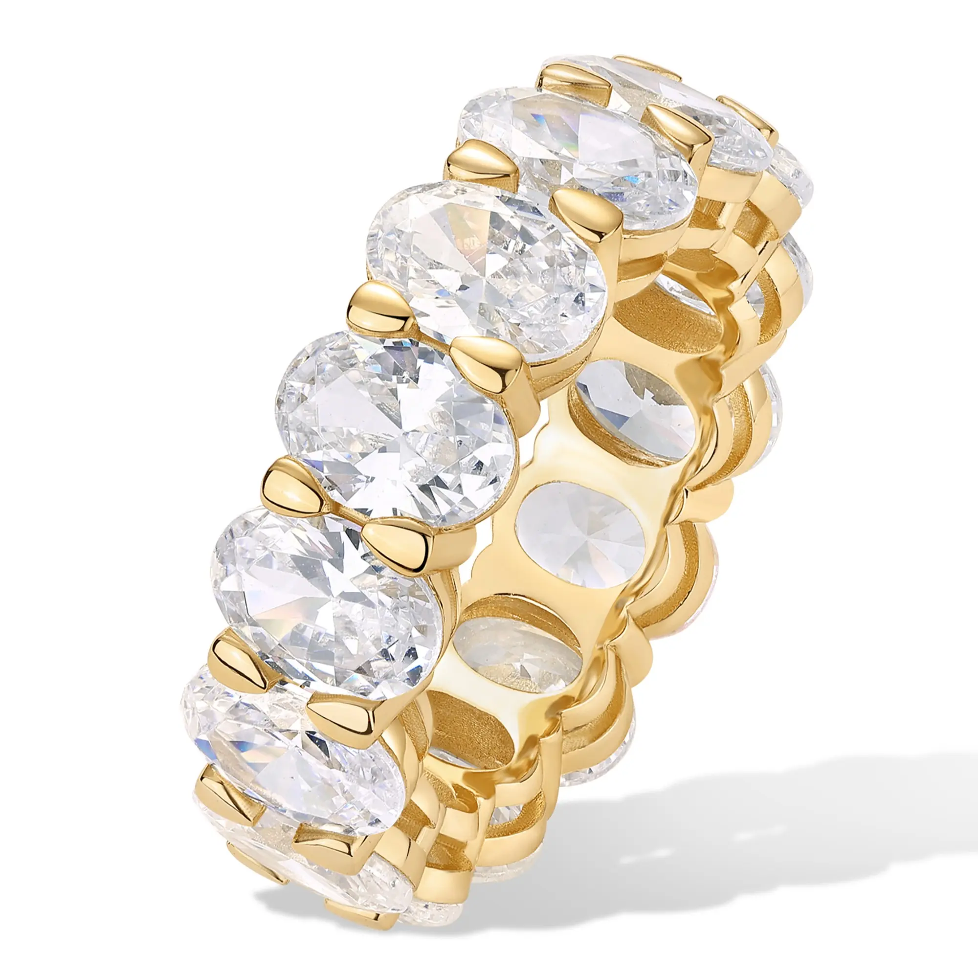 PAVOI 14K Gold Plated Eternity Ring for Women - Oval Cubic Zirconia Wedding Eternity Band - Stackable Wedding Band - Travel Bridal Jewelry