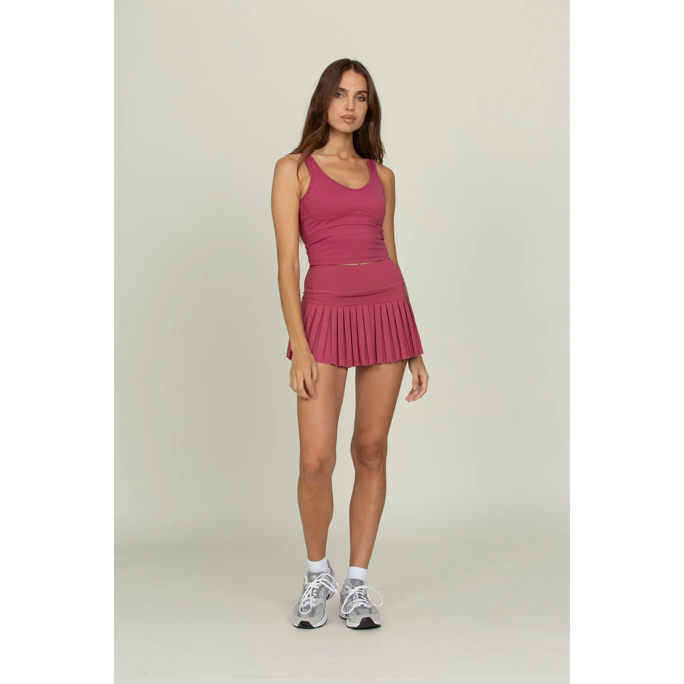 I got this skirt for tennis and I also bought the matching top. It fits great and the pleats are sooo cute! I love the color and it doesn’t really show sweat that much.