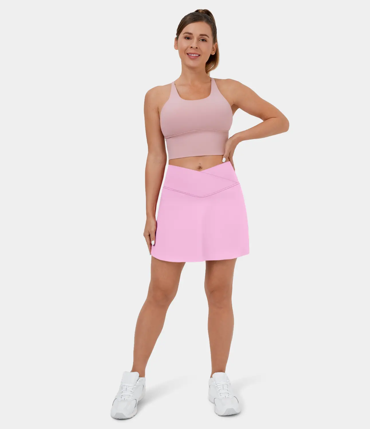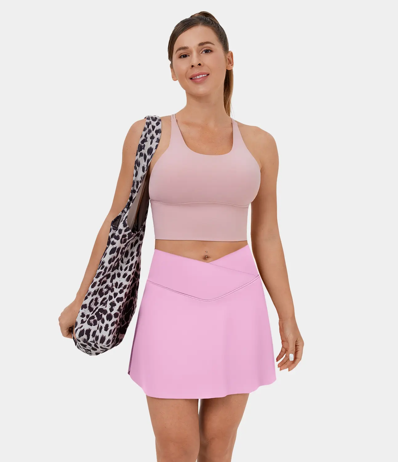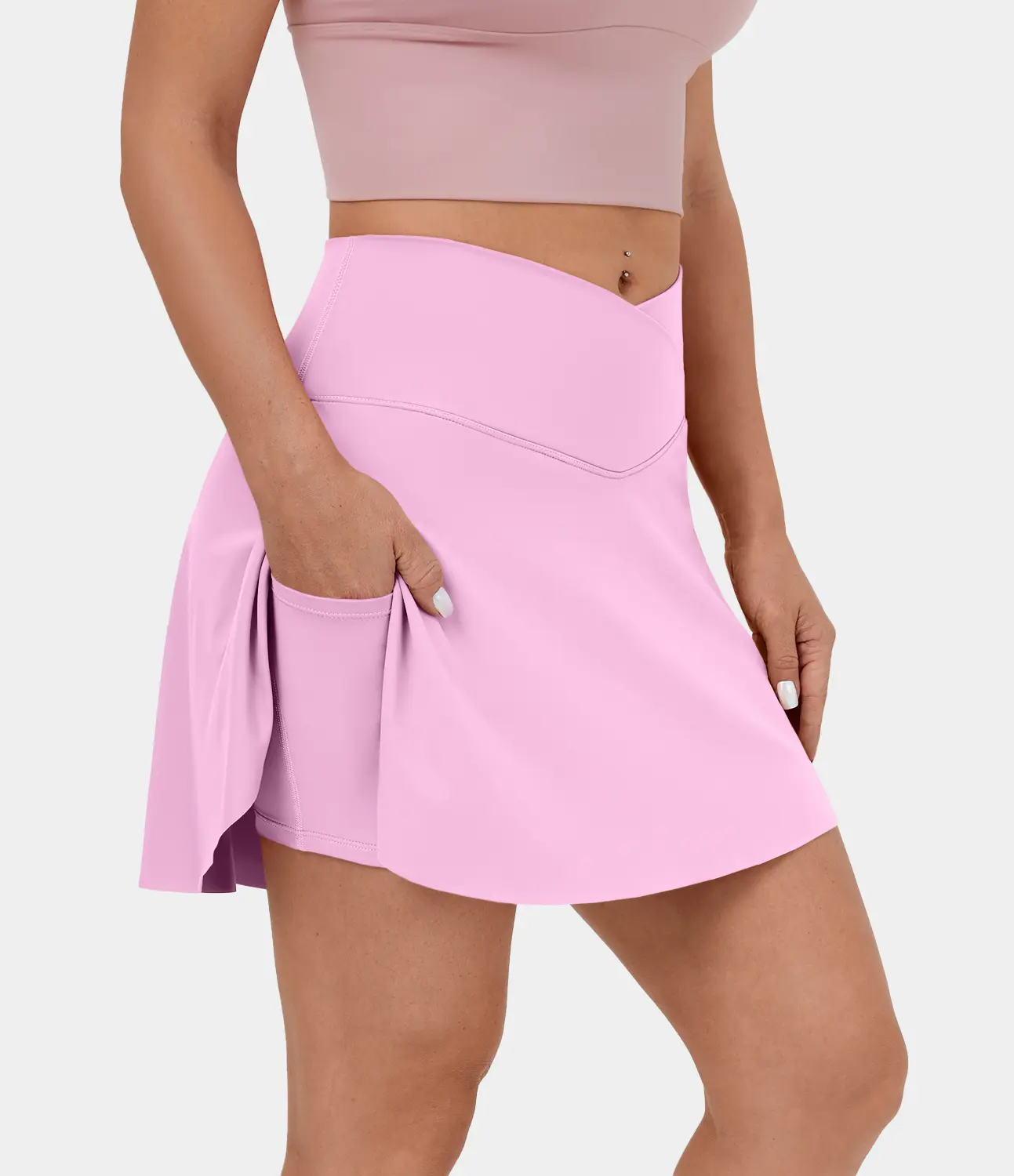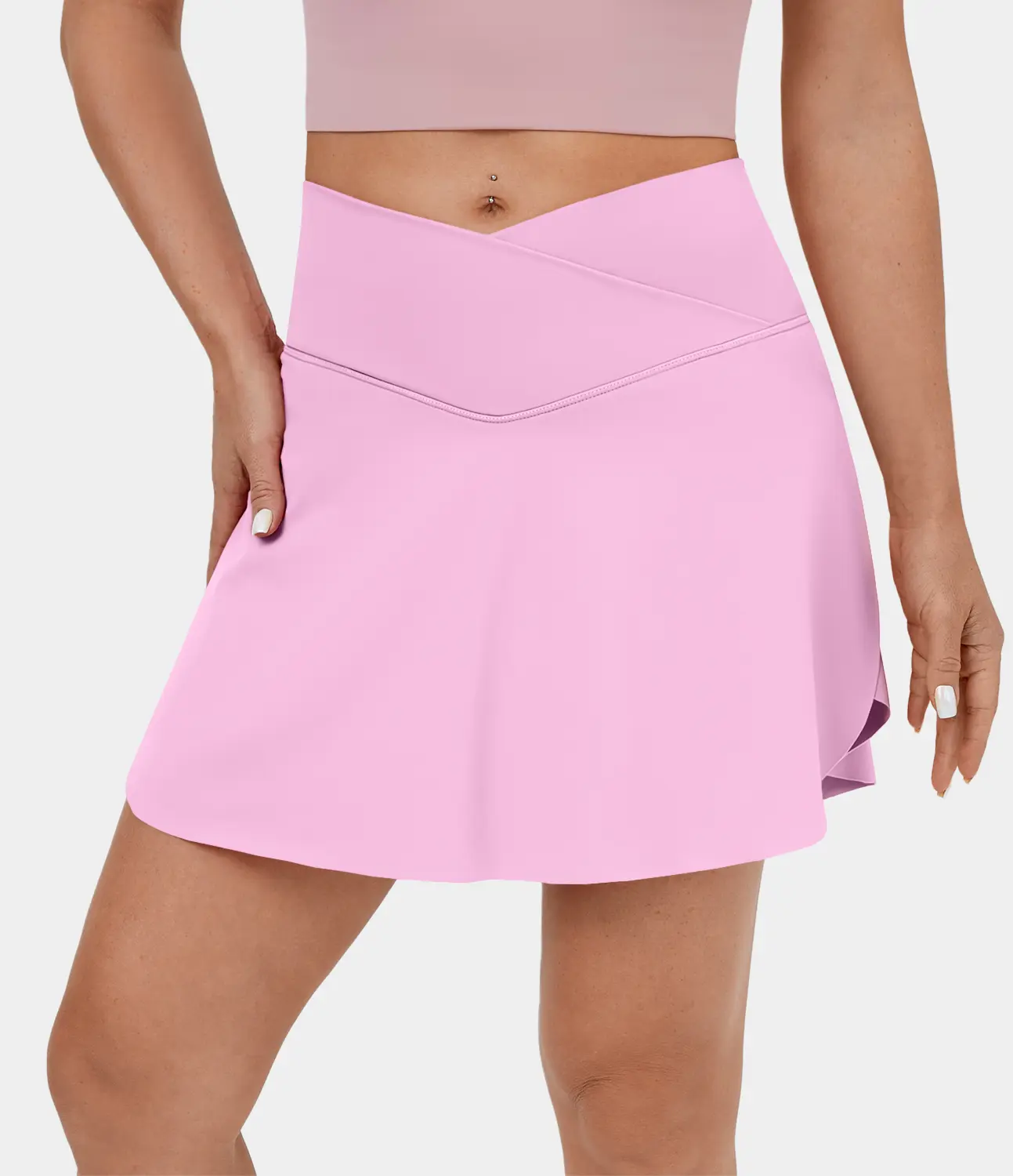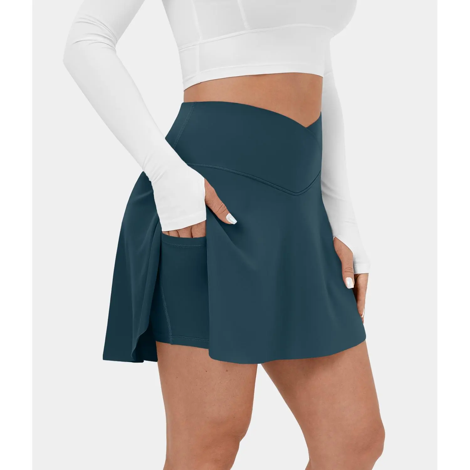 ·Features: A crossover design for a simple yet stylish touch. Featuring two side pockets for storing your essentials such as your phone, credit cards or other small items when you're on the go. Classic curved hem design for free movement. The flared design brings retro vibes for a fun and timeless look. High-low design that offers a slightly more coverage in the back. Mini-length design that hits right at the thigh. Built-in shorts for comfort & coverage, to keep you confident for movement. Breathable fabric made for both indoor and outdoor activities to keep you comfortable for movement. Four-way stretch fabric offers ease of movement and durable wearability.