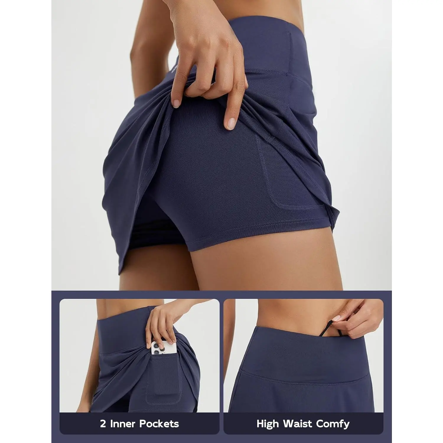 ·2 Inner Pockets: Women's tennis skort with inner shorts features 2 side pockets that are deep enough to hold your card, phone and tennis balls