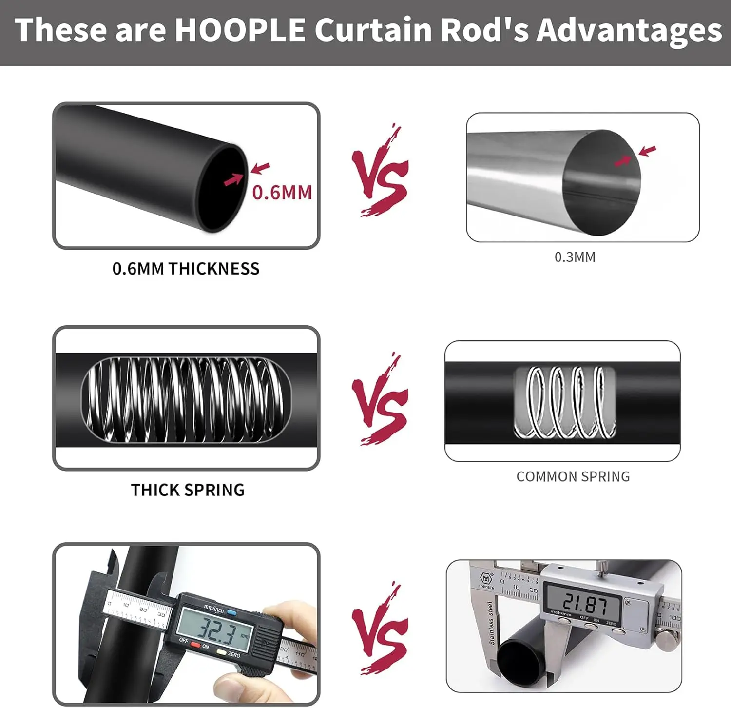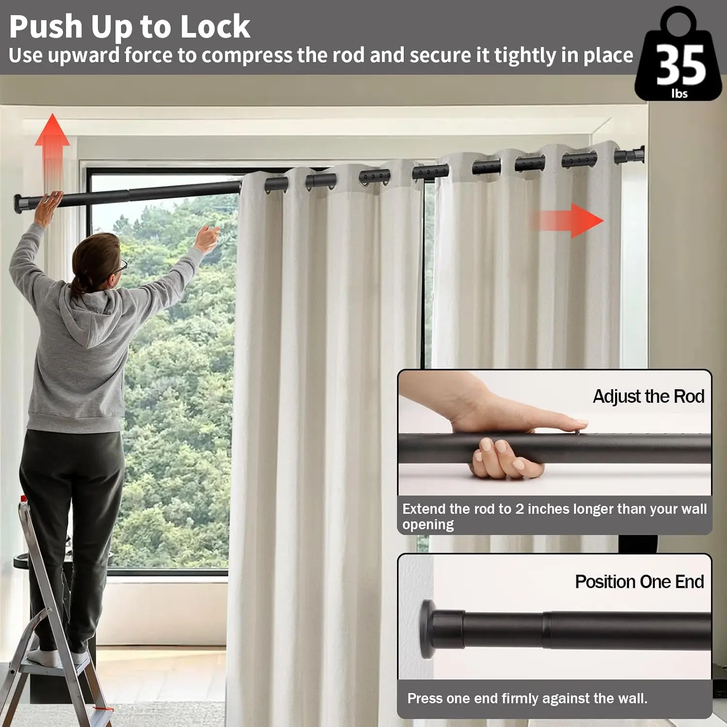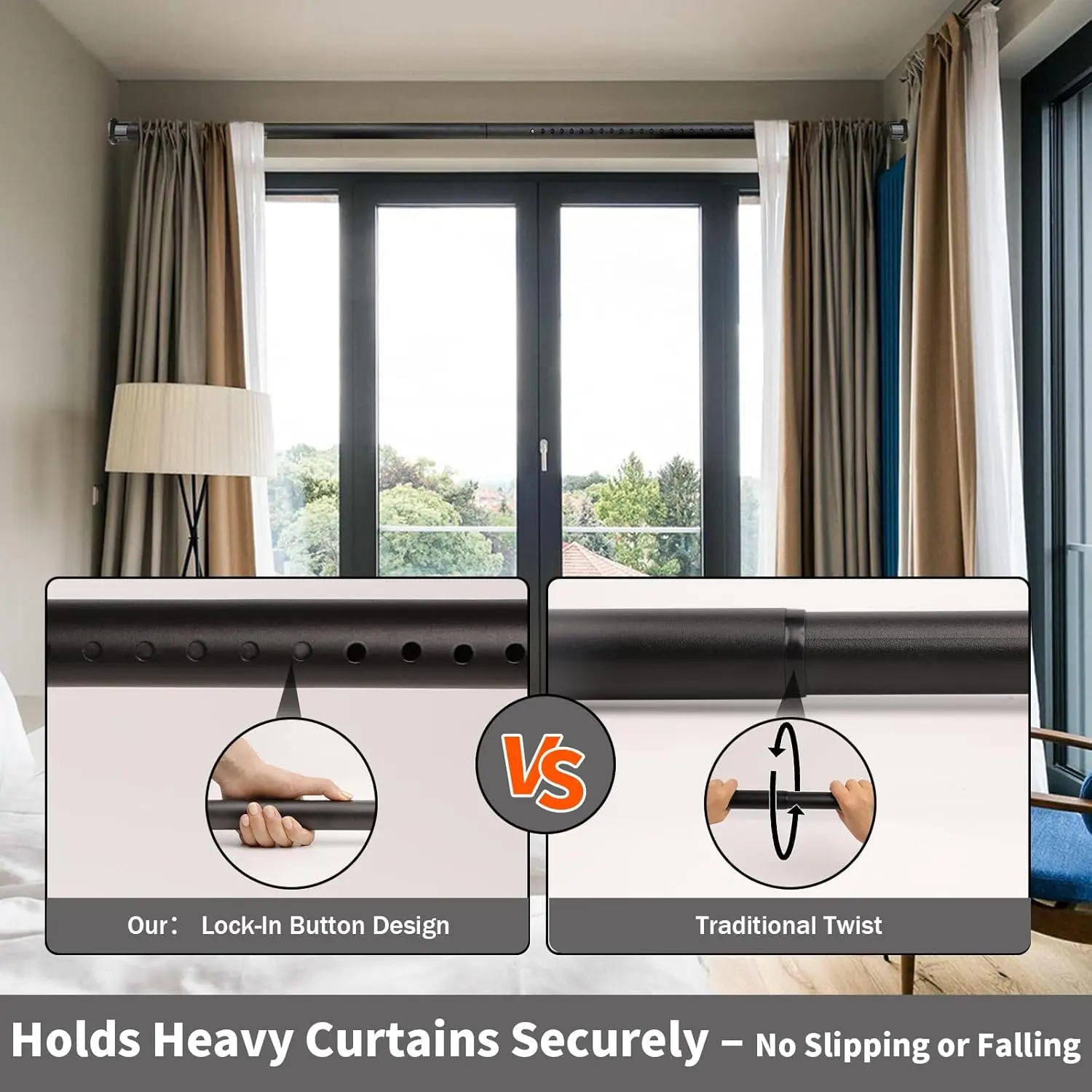 ·Non-Slip & Rustproof Design : Our telescoping curtain rods for windows is designed with the lock-in feature, stays in place. The expandable rod adopts advance non-corrosion tech, not rust under any environment, sturdy and durable, heavy duty high strength steel tube.