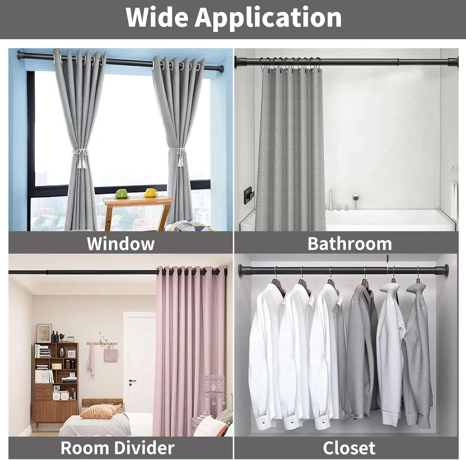 ·Various Applicable Scenarios : Our curtain rod for window can also be used in other areas of the home, such as bathroom, bedroom, kitchen, balcony. You can use the black tension pole to hang privacy curtains in a doorway or blackout curtains in a bedroom window.