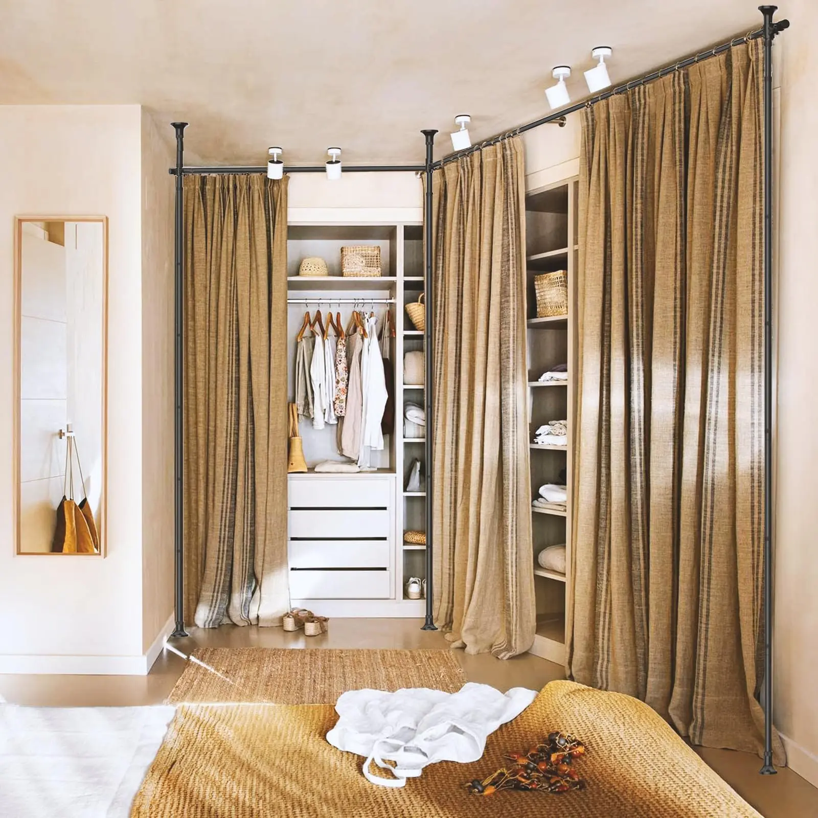 Space saver,privacy Anywhere: Ideal for living rooms, dorms, bedrooms studios, offices, shower and more. Create a home office, hide storage, or divide a closet for added privacy
