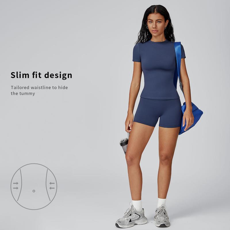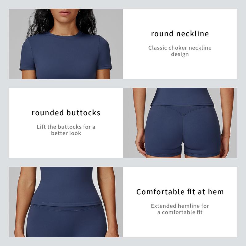 Tenwolf Women's Solid Ribbed Crop T-Shirt & High-Waisted Shorts Set, Quick-Dry for Yoga, Gym, Workouts, Running, Ladies' Sports Apparel for All Seasons, Women's Workout Sets, Women's Workout Clothing, Fitness Clothing, Casual Activewear, Fitness Summer Bo