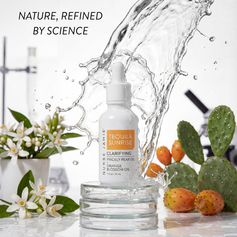 Nurse Jamie’s Tequila Sunrise Clarifying Oil is a lightweight facial oil made with 100% botanical ingredients, including Prickly Pear Oil and Orange Blossom Oil. Specifically formulated to help soothe blemish-prone skin, this gentle blend supports hydration while visibly reducing puffiness and calming areas of irritation. Ideal for daily use, it helps soften and balance the skin without clogging pores or leaving a greasy finish.