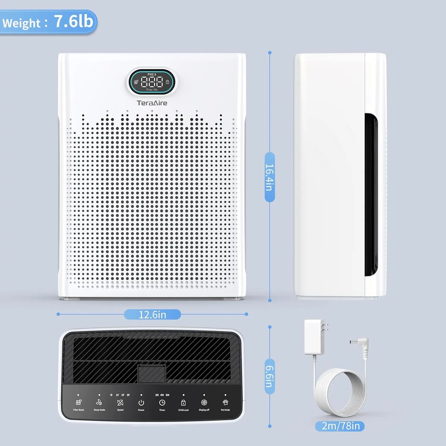 Setting up your purifier is a breeze: follow the concise instruction manual, and you’ll have it running in minutes. When it’s time to replace the filter (only use TeraAire Original Filters – not compatible with other brands), the filter replacement indicator light turns red to remind you. After swapping in a new filter, just long-press the button for 3 seconds to reset the light – it’s that simple!