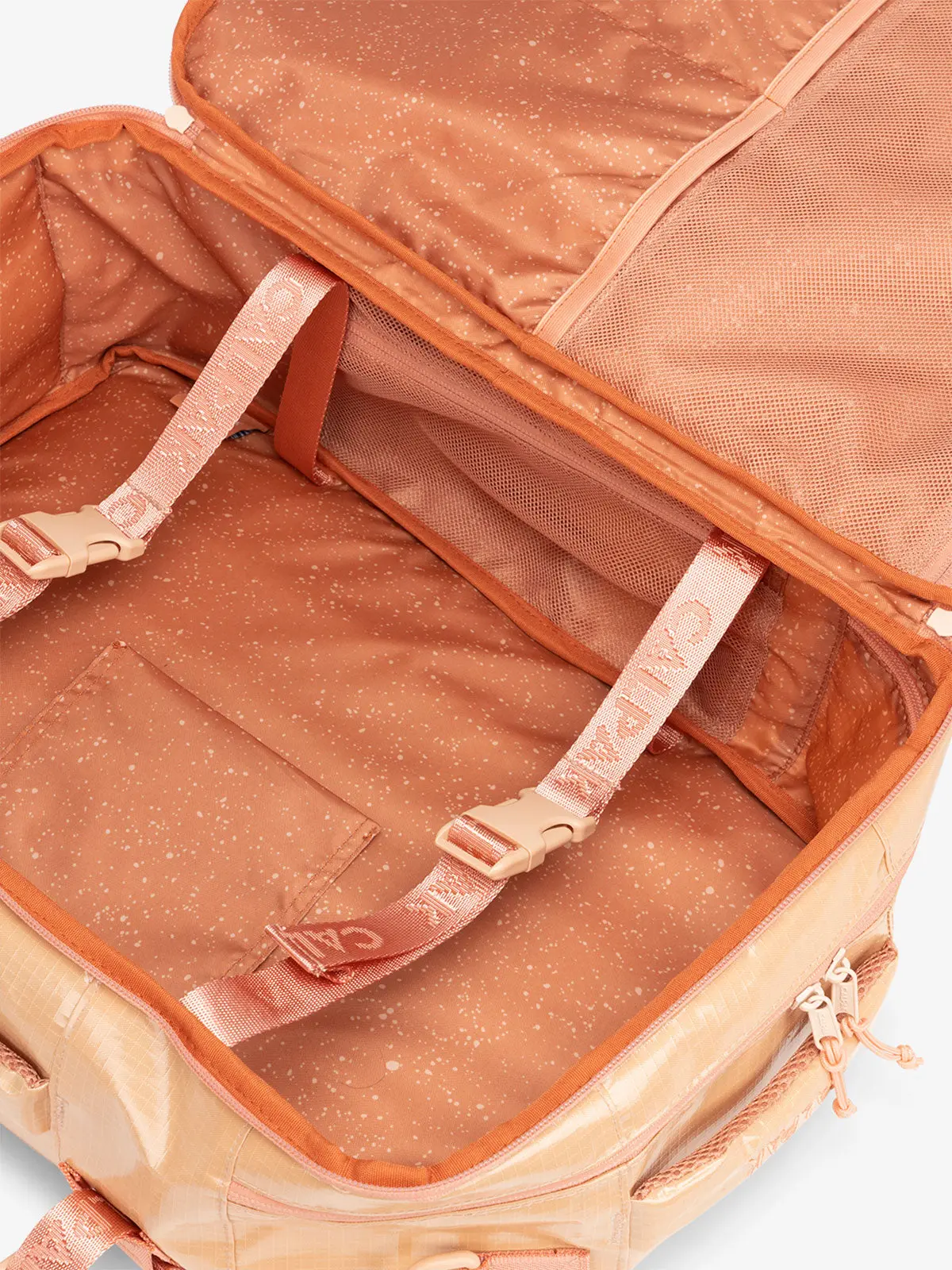 Weighing just 2.7 pounds, the Terra Duffel Backpack boasts padded shoulder and sternum straps for comfort on the go. With multiple integrated pockets, it’s perfect for all your essentials whether you’re camping, traveling, or hitting the gym.