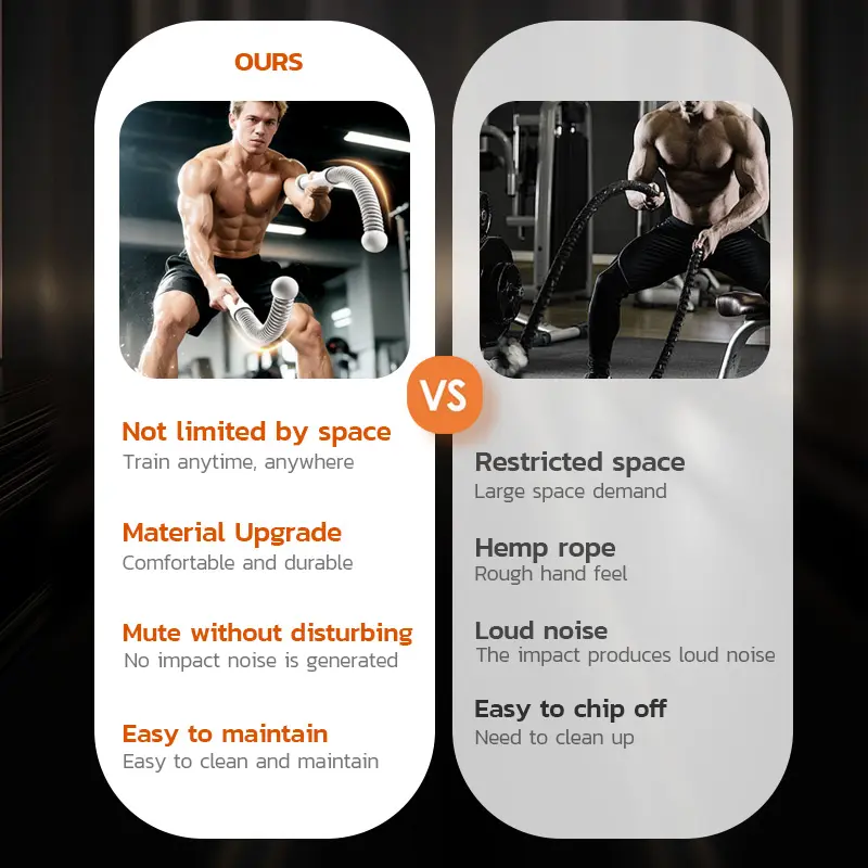 Absolutely love these ropeless battle ropes strong enough for men and just right for women easy to throw them in a bag to go excellent quality