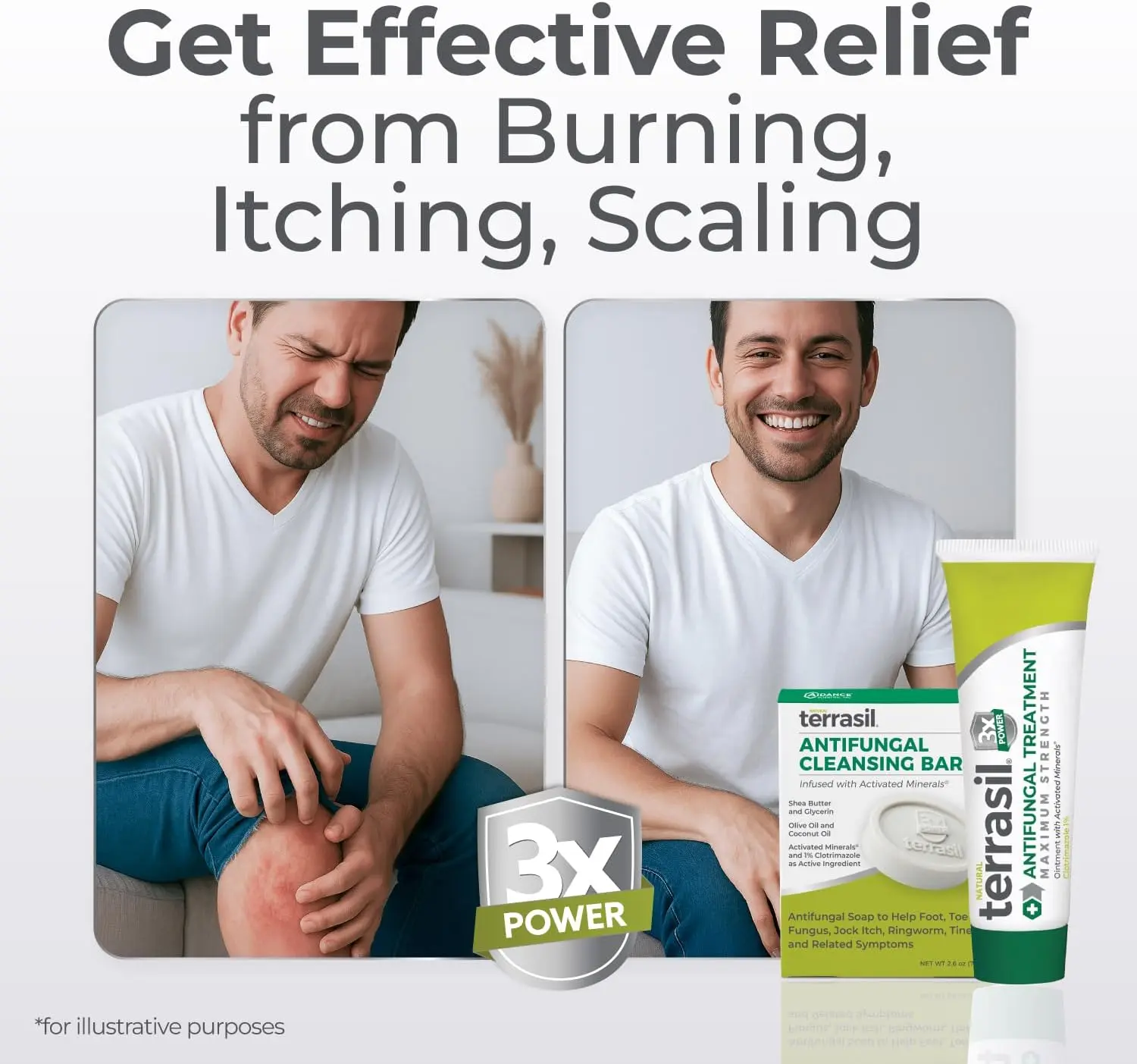 Terrasil Antifungal Treatment comes in a 2-product kit. It includes a 14g tube of antifungal cream with Clotrimazole and natural ingredients. The kit also features a 75g soap bar. This combination is ideal for relieving ringworm, jock itch, athlete's foot, and fungal yeast infections.