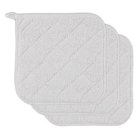 Design Imports Terry 3-piece Potholder Set Colorful and functional, these pretty and well-made potholders look adorable in any kitchen. They're perfect for cooking, baking, and serving, and make great gifts for housewarmings or "just because." What You Get 3 Potholders