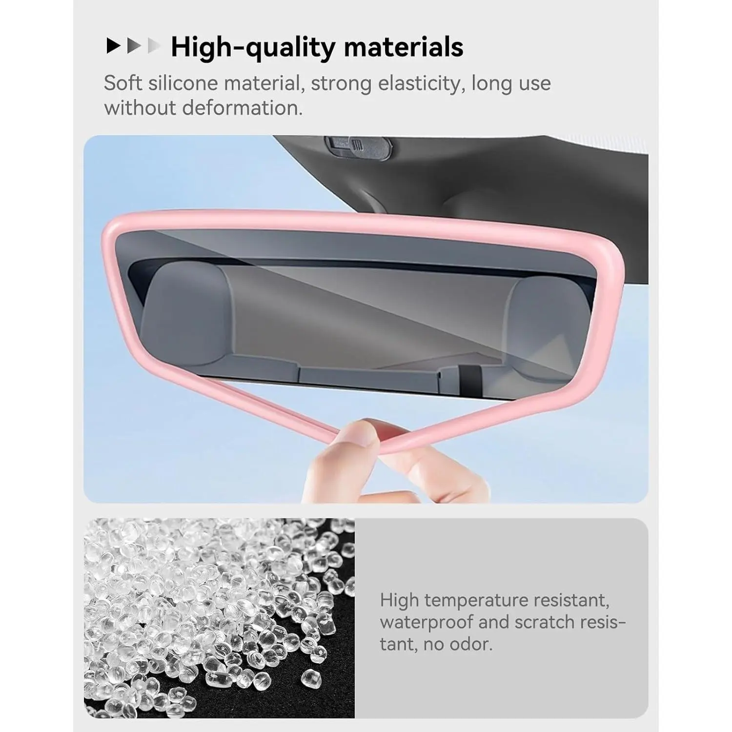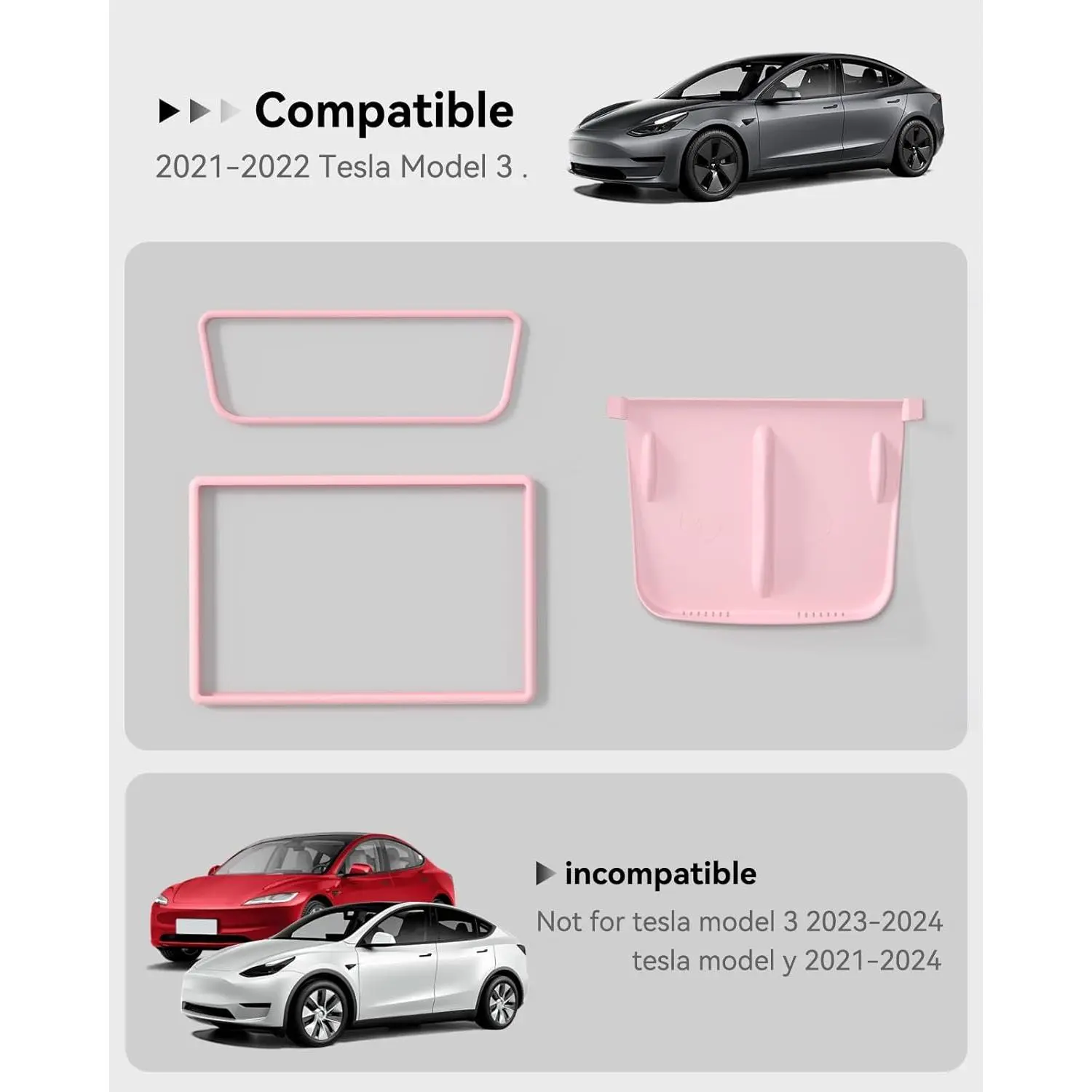 Center Console Wireless Charger Mat,Screen and Rearview Mirror Protector Frame,Anti-Slip Silicone Protector for Tesla 2021-2023 Model 3 and 2021-2025 Model Y Accessories(3 PCS Pink)
