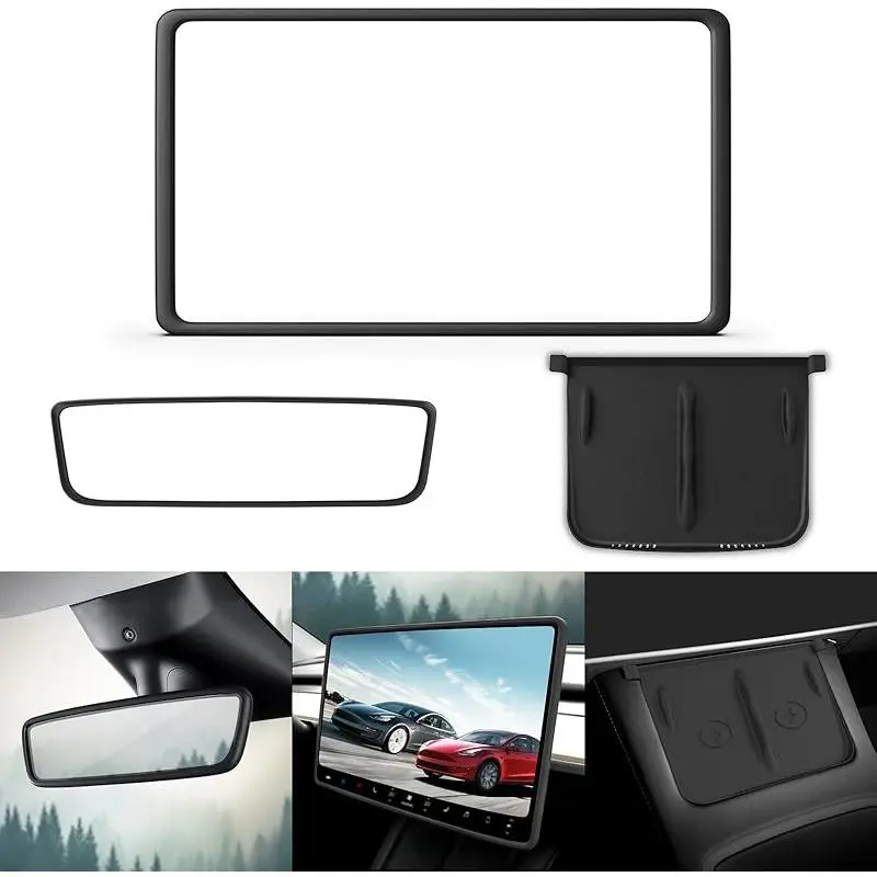 [Customized Design:] Specifically designed for Tesla Model 3 2021-2023,Model Y 2021-2025,Protect the central charging area and the central display screen.It includes a central wireless charging pad, a Console screen frame protector and Rearview mirror frame protector.