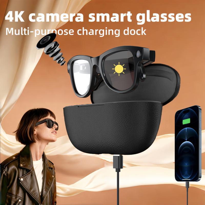 [Valentine's Day] Tukio M02 Ultra-Smart AI Translator Camera Glasses with Charging Case HD 4K Camera Surround Sound Bluetooth Calling UV Protection Photochromic Lenses Ideal for Travel Vlogs