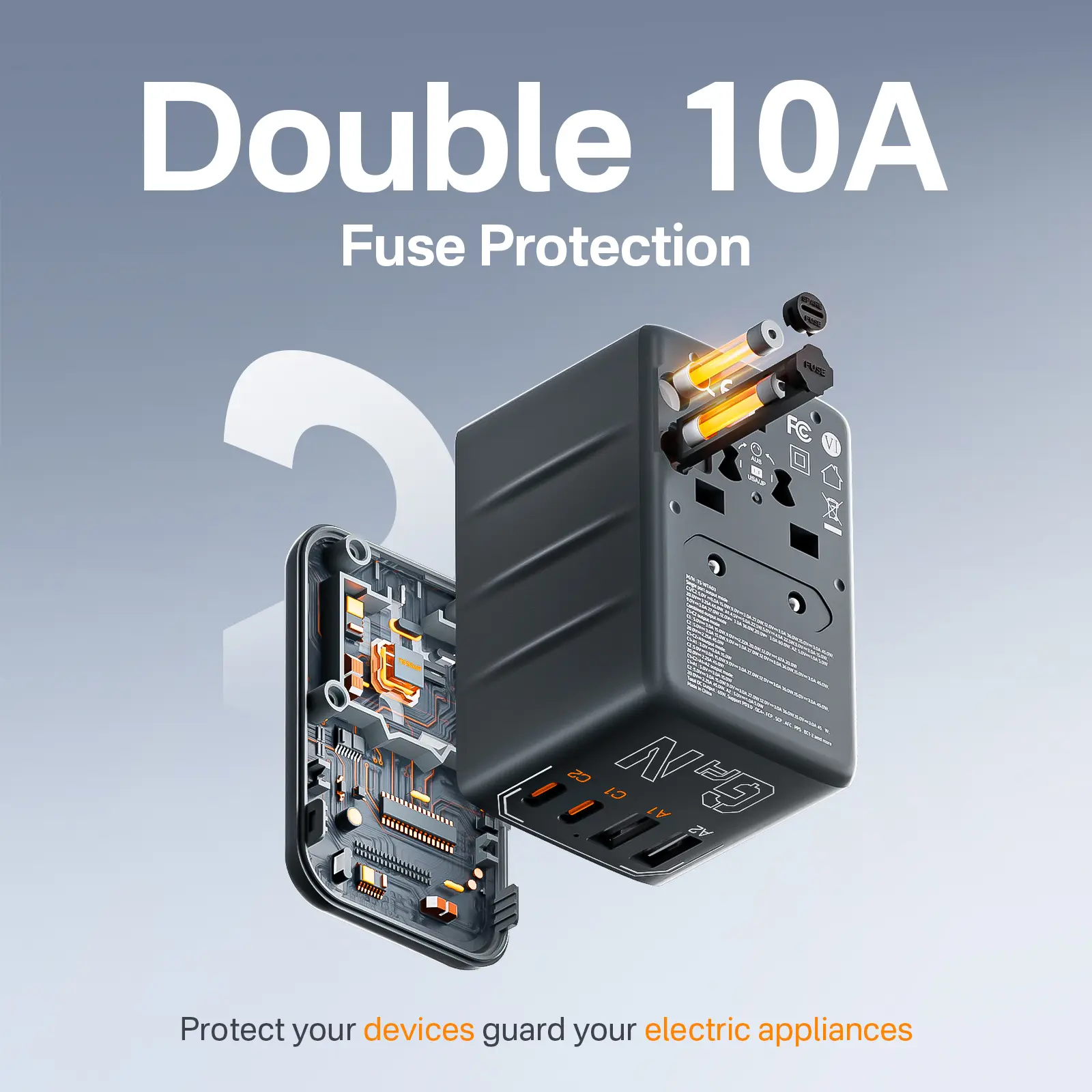 ·Safety Protection: Double fuse protects devices. Dynamic temperature sensors prevent overheating. Check compatibility with hair dryers, straighteners, and curling irons before use. Note: Works on 100V to 250V devices. Check compatibility with hair dryers and curling irons.