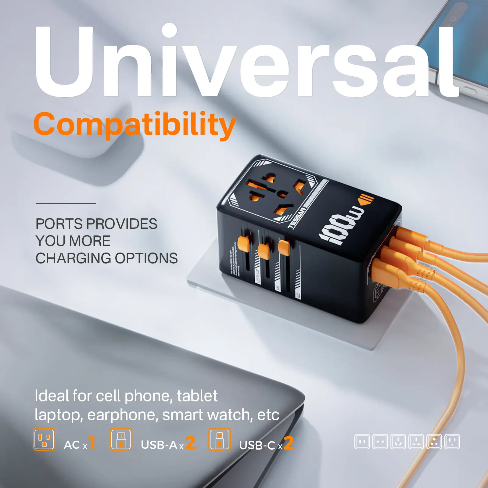 ·International Travel Adapter: Covers over 200 countries, ideal for global travels.
