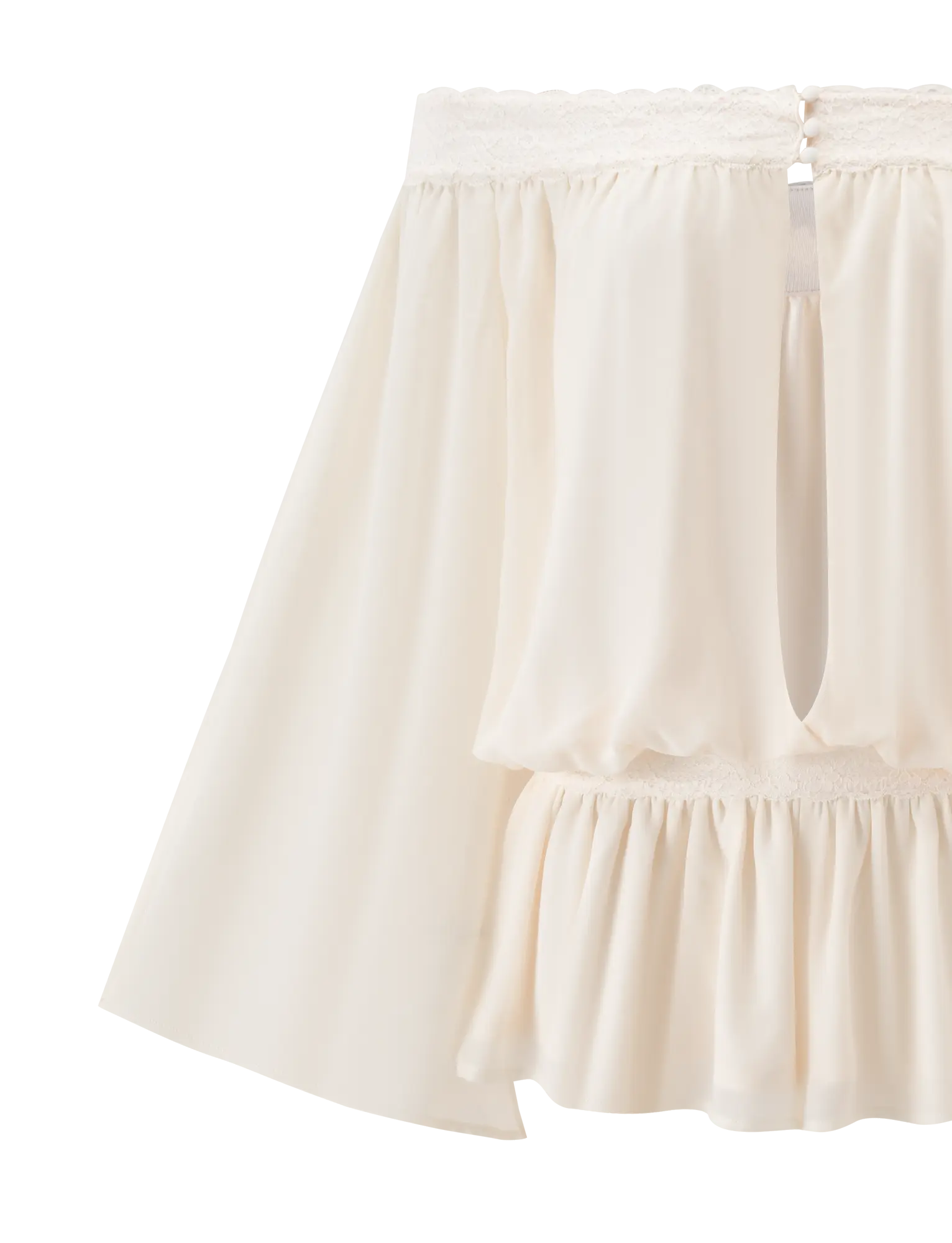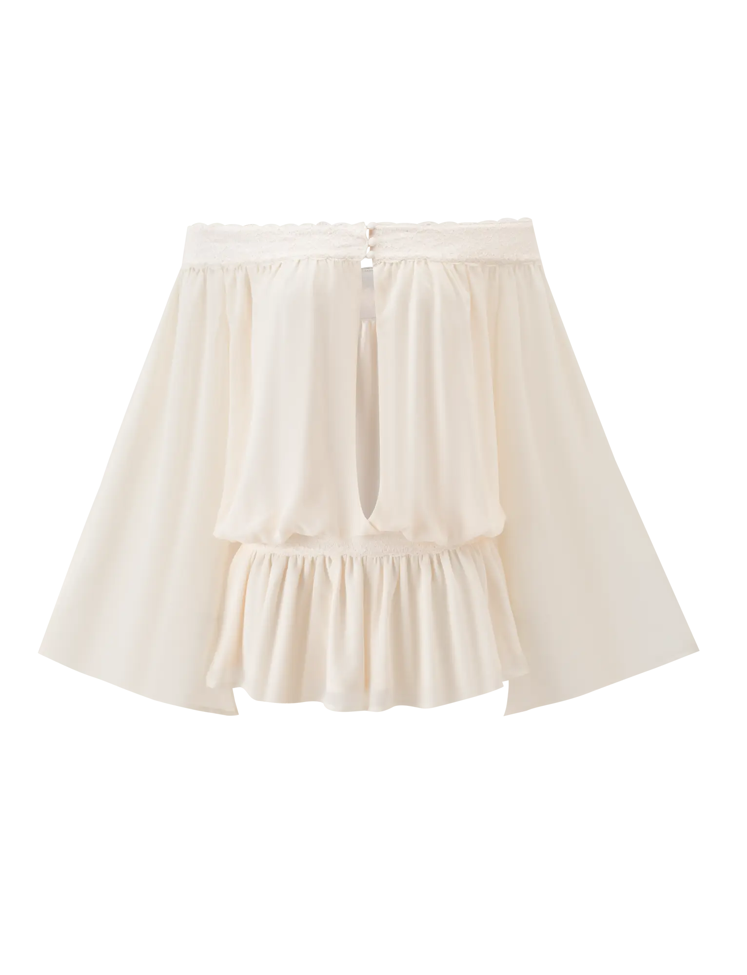 ·Flirty off-shoulder neckline finished with a stretch lace trim